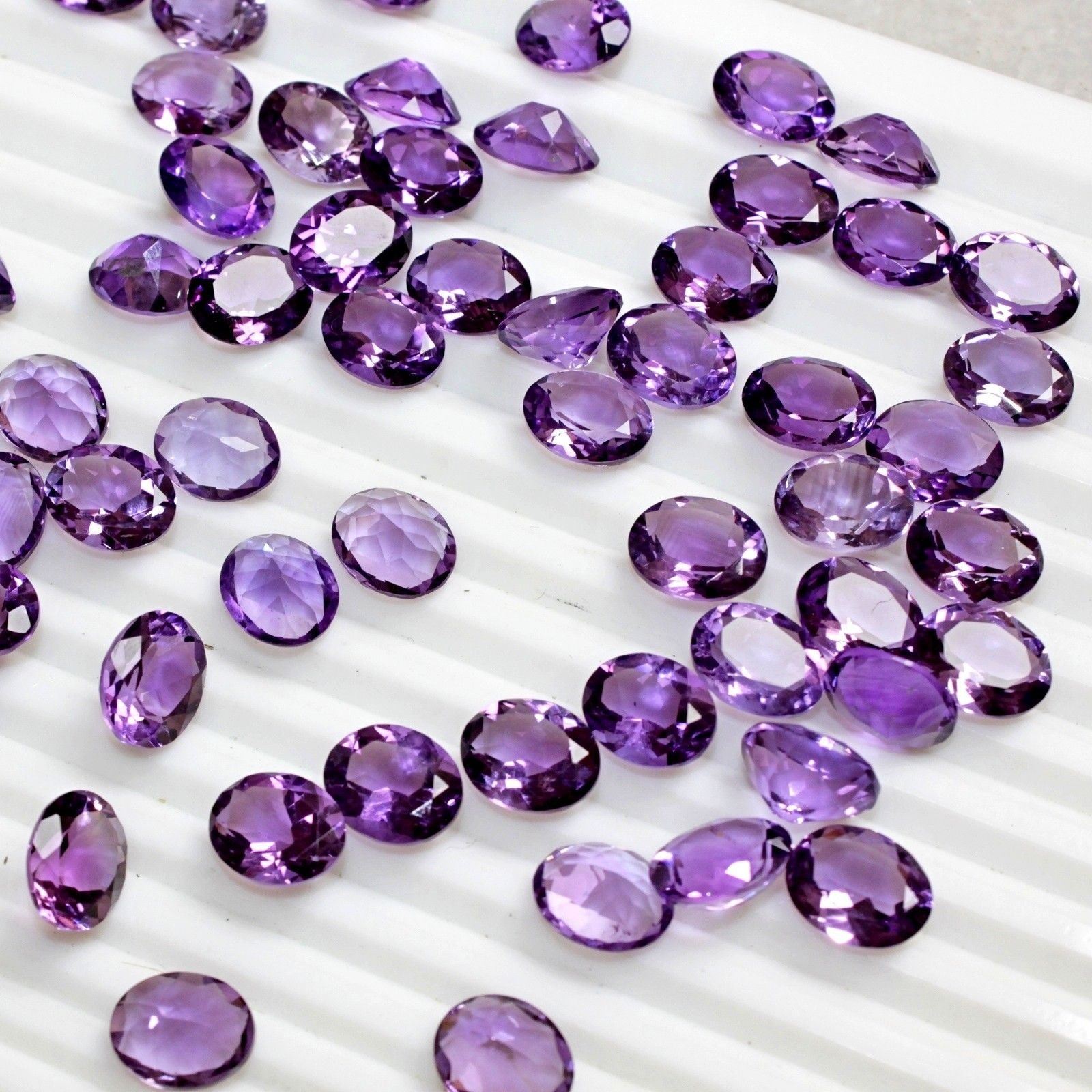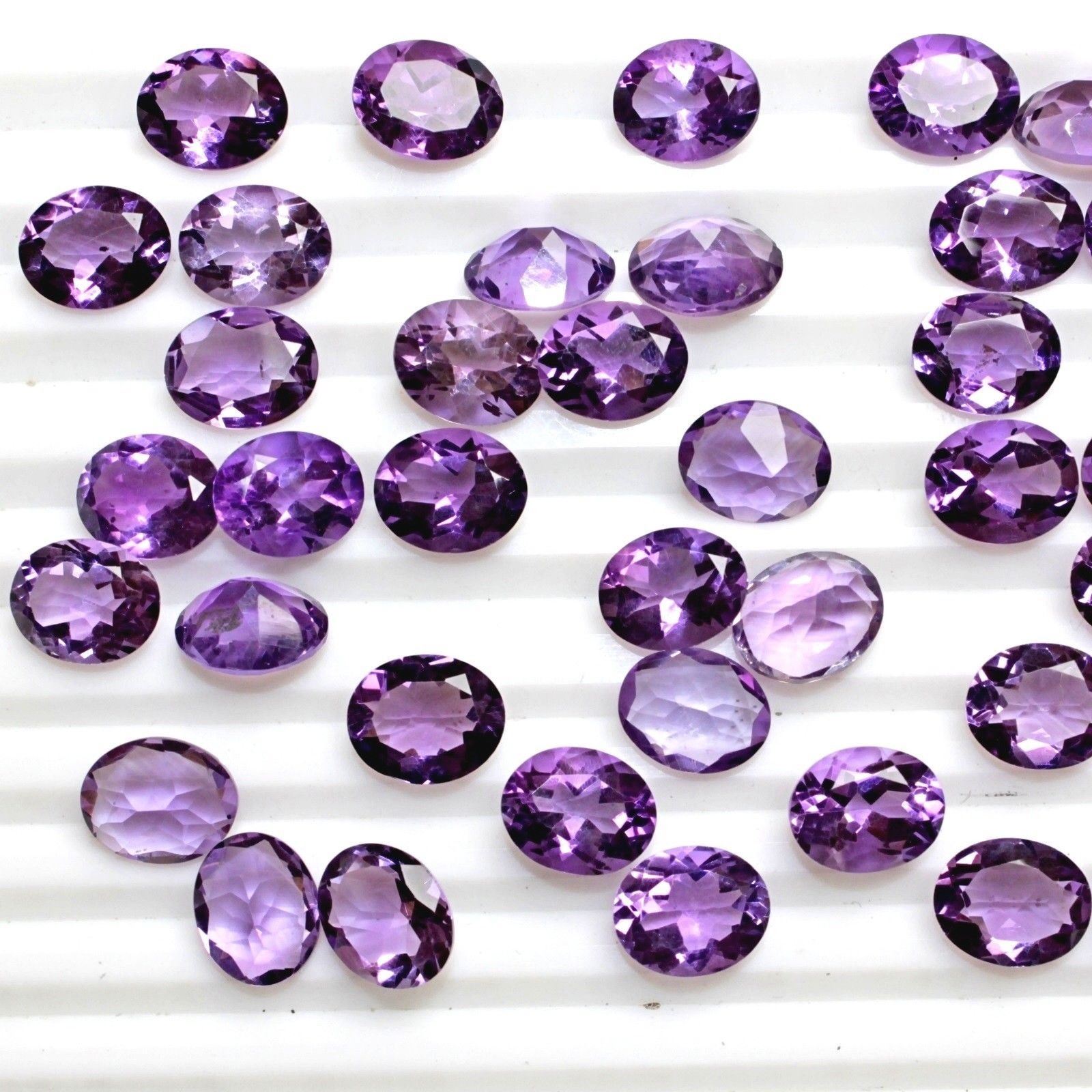 GEMSTONE - AMETHYST , SHAPE - OVAL , SIZE - 4X5 MM , QUANTITY - 100 PIECES , WEIGHT - 31.00 Cts. , COLOR - PURPLE , NATURAL/LAB CREATED - NATURAL , TREATMENT - NONE , CUT GRADE - EXCELLENT , COUNTRY OF ORIGIN - ZAMBIA , COUNTRY OF MANUFACTURE - INDIA