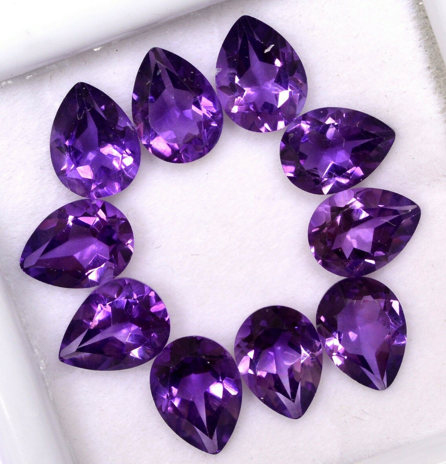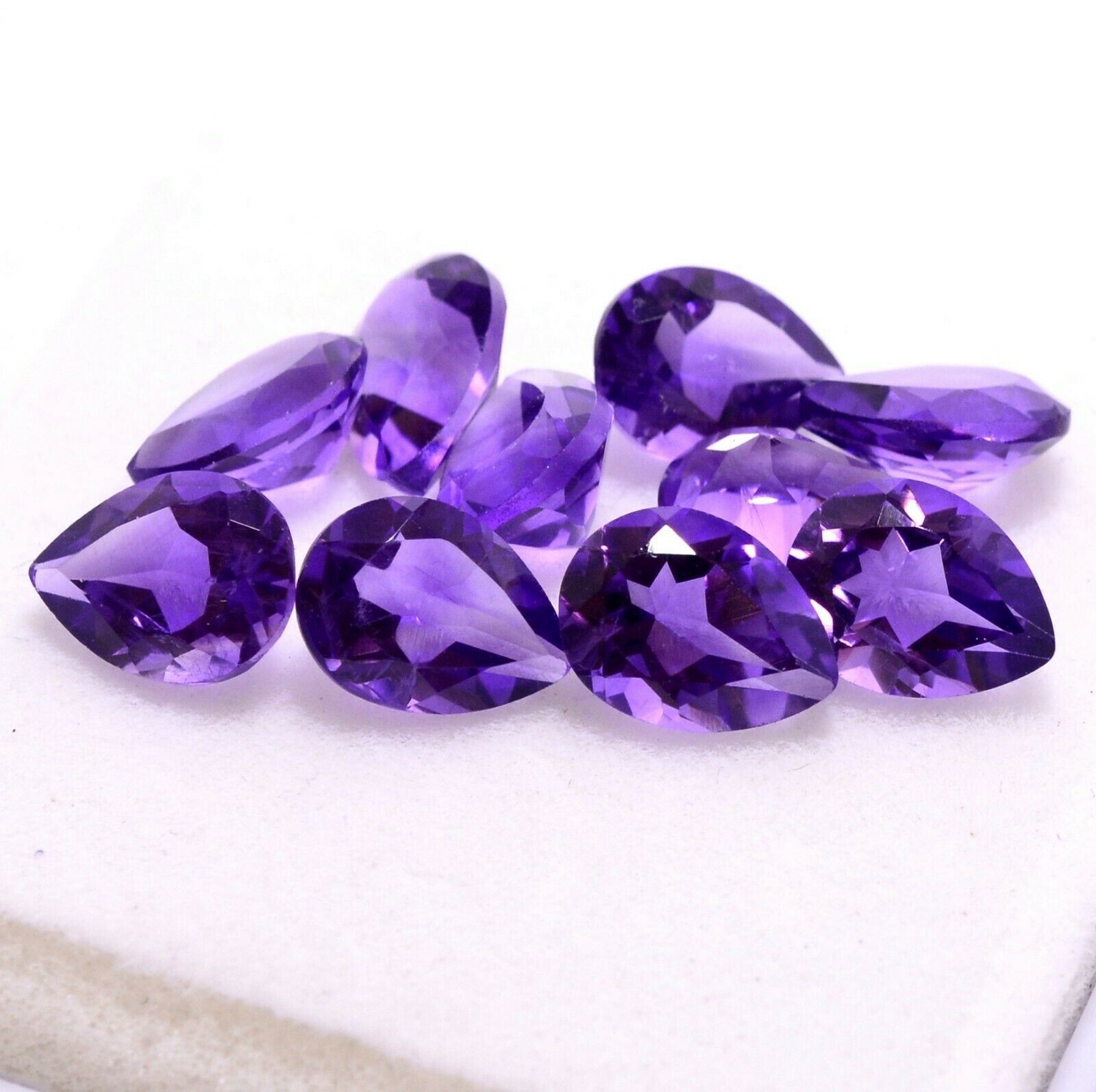 GEMSTONE - AMETHYST , SHAPE - PEAR , SIZE - 7X9 MM , QUANTITY - 100 PIECES , WEIGHT - 148.00 Cts. , COLOR - PURPLE , NATURAL/LAB CREATED - NATURAL , TREATMENT - NONE , CUT GRADE - EXCELLENT , COUNTRY OF ORIGIN - ZAMBIA , COUNTRY OF MANUFACTURE - INDIA