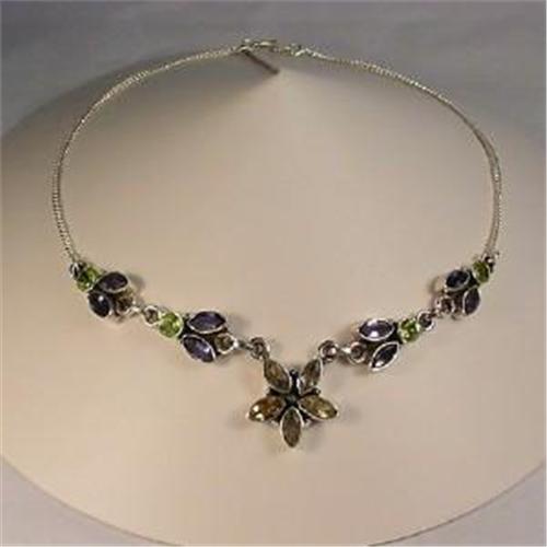 <tr><td>Title:Amethyst, Peridot, Citrine and Silver Necklace.</td></tr>