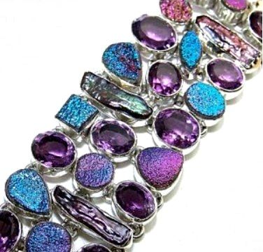 Silver & Amethyst, Titanium Drusy & Biwa Pearl Bracelet. Allow 6 to 8 weeks for delivery.