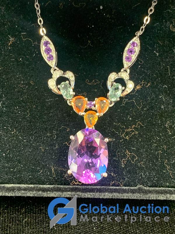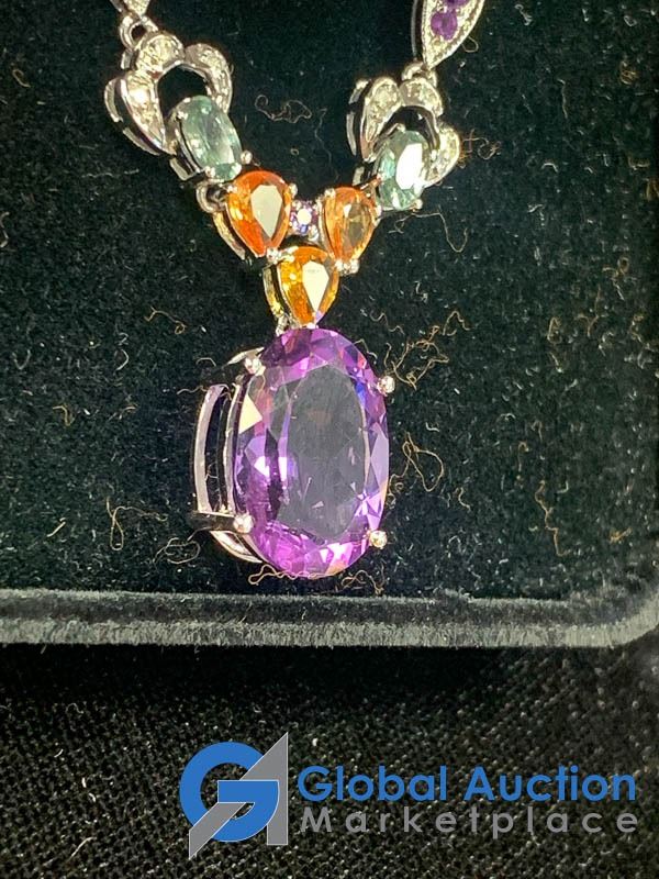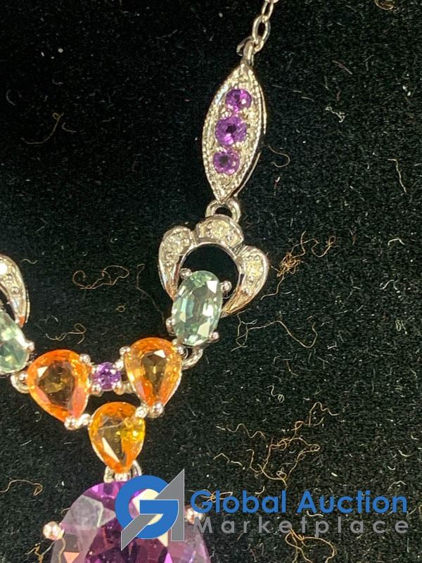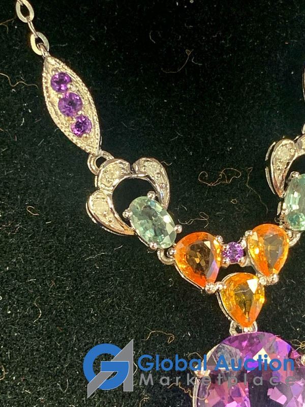 Amethyst/Topaz/Peridot on Silver Colored Knecklace