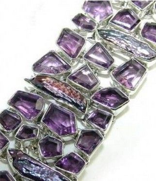Silver & Amethyst and Biwa Pearl Bracelet. Allow 6 to 8 weeks for delivery.