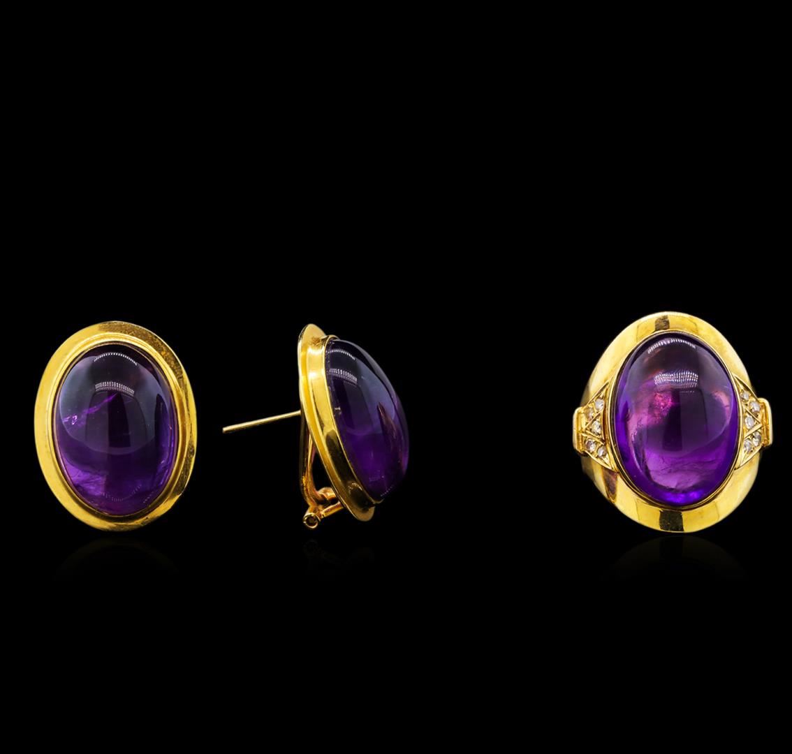 Amethyst and Diamond Earrings - 14KT Yellow Gold. Total Weight: 19.8 grams.