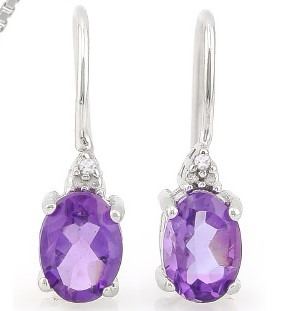 Oval cut 2.2CTW Amethyst gemstones set in earrings and pendant with 0.06CTW genuine Diamond accents. Mountings are Platinum over Sterling Silver for added brilliance. Set includes sterling silver 18" twist chain and friction earring backs. 2.8g