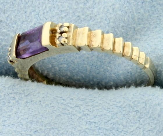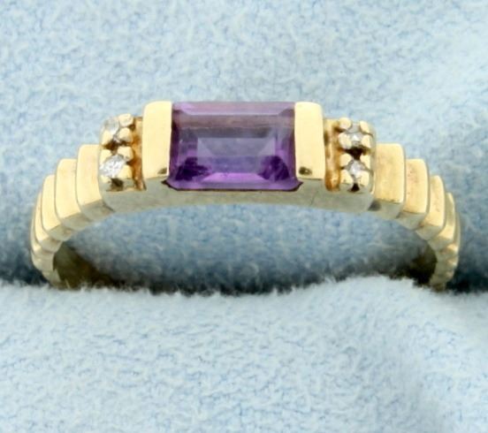 This 10K yellow gold ring contains 1/2ct amethyst and also contains four .01ct diamonds. Size 7 1.7g