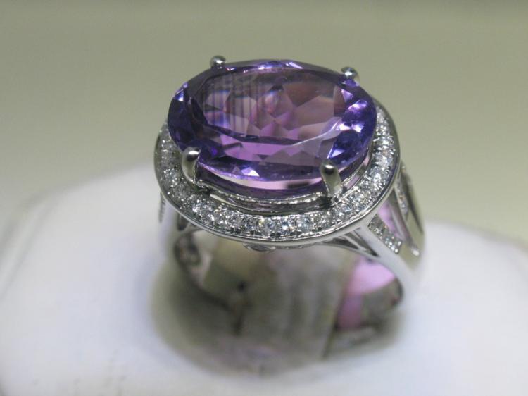Total Weight of Round Diamonds - 0.54 ct * 1 Center Amethyst - 5.17 ct * 14K White Gold - 5.16 grams * Ring Size: 6-3/4 * Appraised Value: $ 3,960.00 *