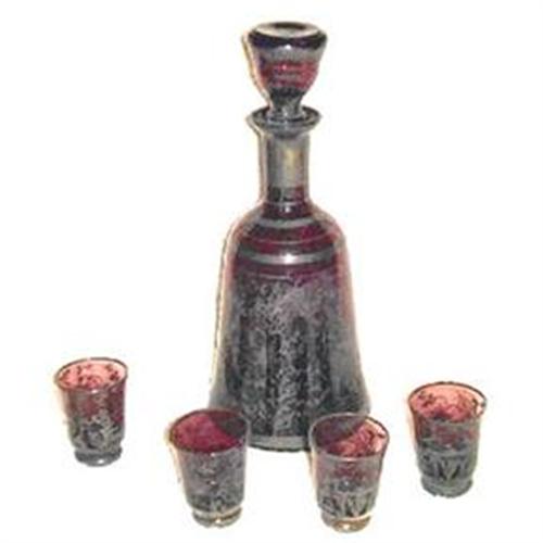 <tr><td>Title:Amethyst with Silver Overlay Decanter Set</td></tr>
