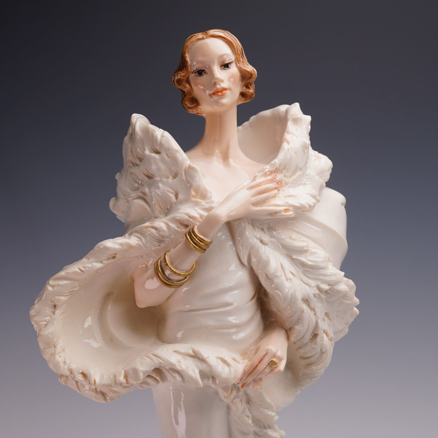 Amilcare Santini Sculpture, Lady with a Feathered Boa