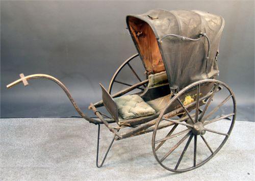 Amish Style Baby Buggy Black with Tole Painting on Sides and Back