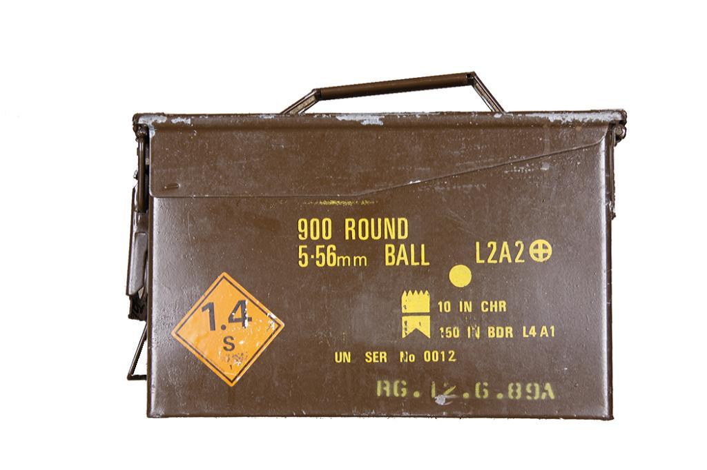 Ammo Can of .223 Ammo Consists of approx 900 rds of .223 FMJ ammo 10 rds to the clip in 150 rnd bandoleers in brown military ammo can.Consists of approx 900 rds of .223 FMJ ammo 10 rds to the clip in 150 rnd bandoleers in brown military ammo can.