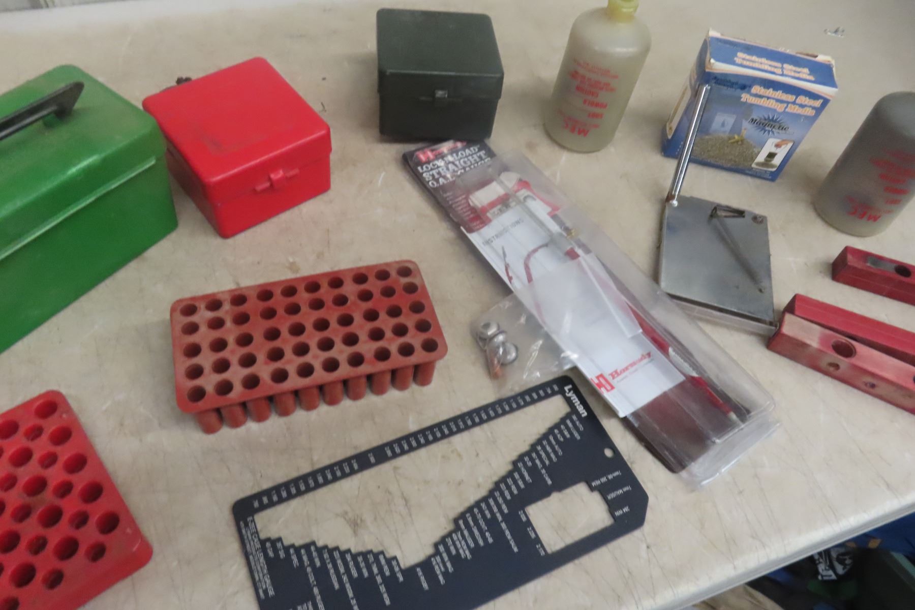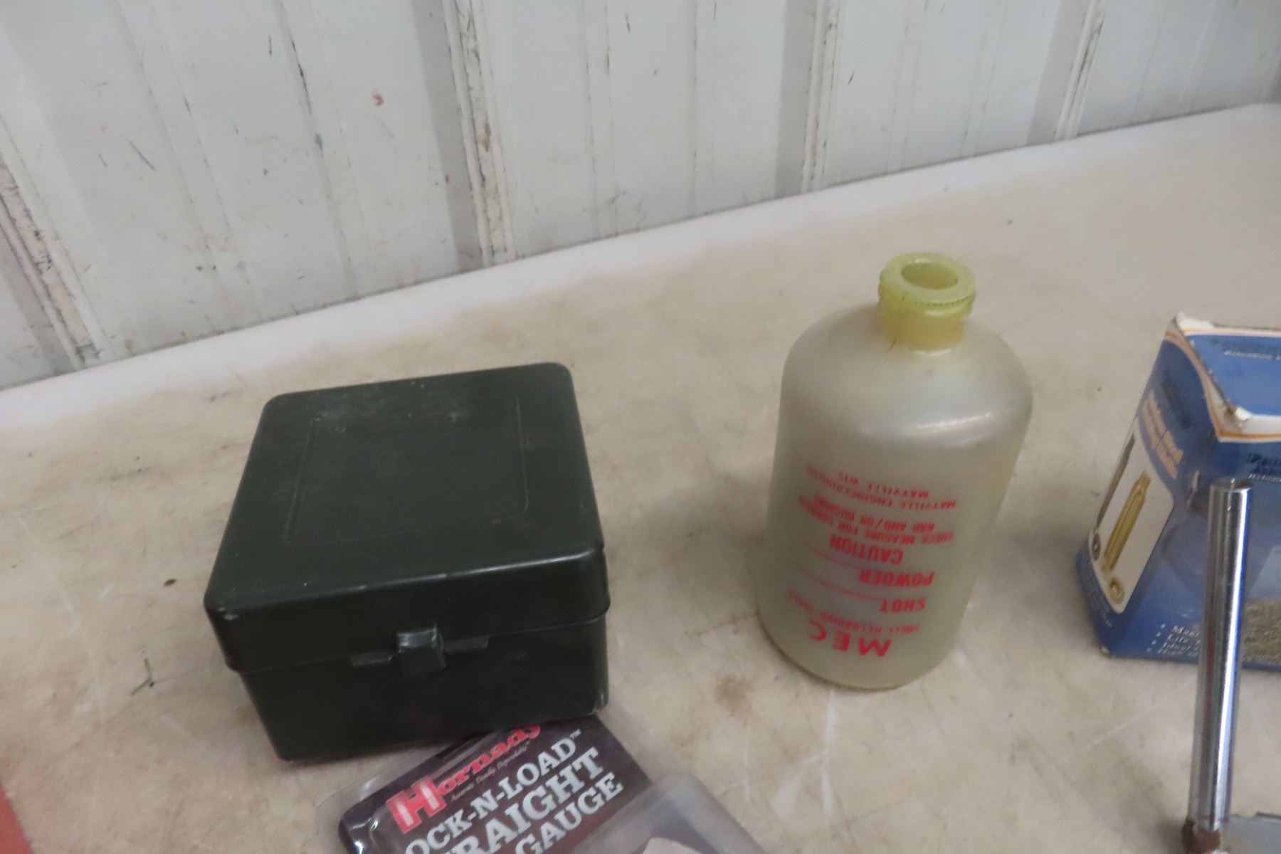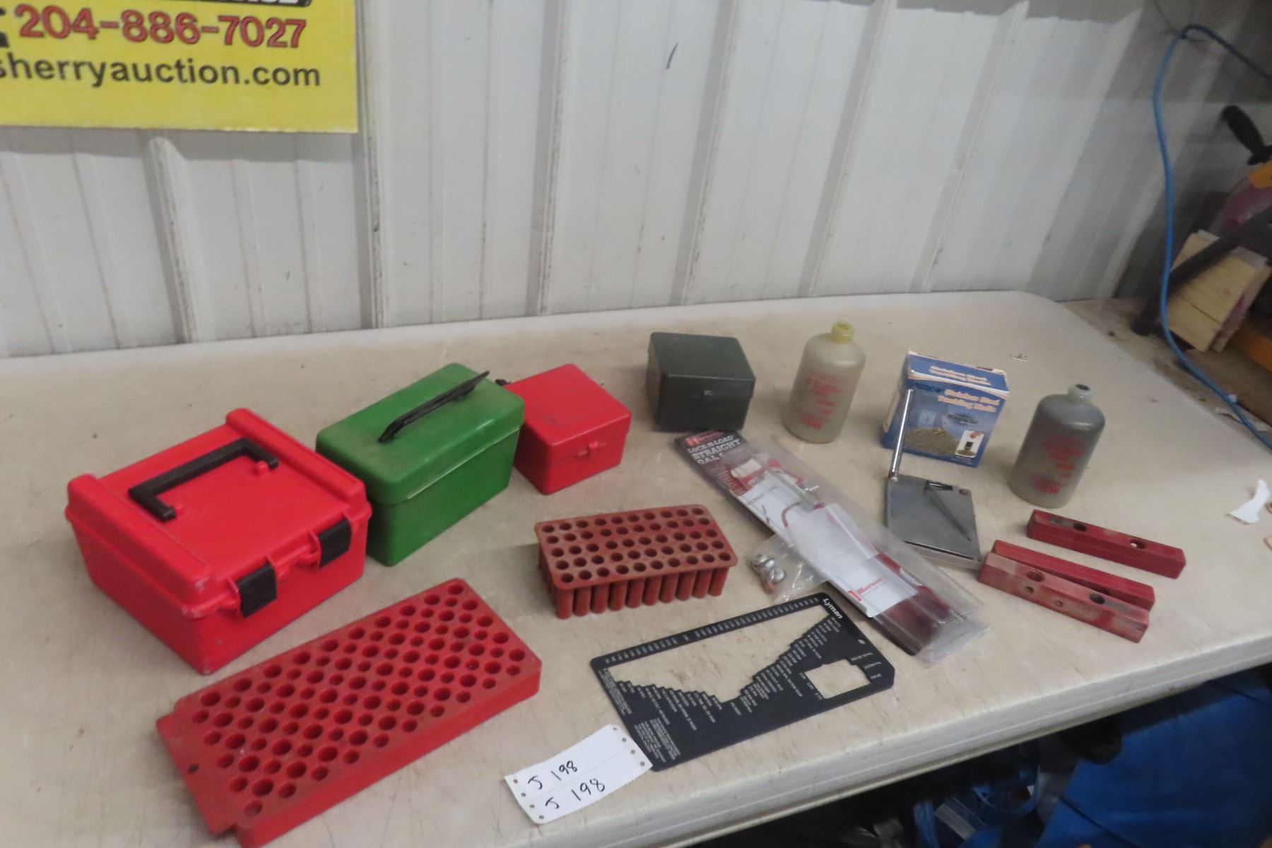 Ammo Case, Shell Holders, Stainless Steel Tumbler, Hornady Lock-N-Load Item, MEC Powder Flask and Lyman Bullet Measuring Tool **** Must Have Pal, MUST PRESENT PAL WHEN PAYING INVOICE. WE DO NOT AND WILL NOT SHIP AMMO. IF YOU WIN AMMO YOU WILL BE RESPONSIBLE TO PAY FOR IT AND RESELL IT UNDER YOUR OWN CONSIGNMENT ****