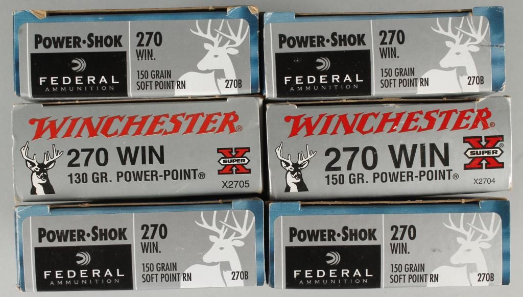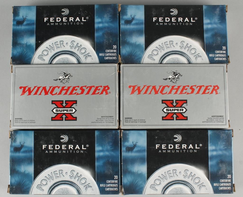 2 boxes 150 gr. power-point by Winchester, 4 boxes 150 gr. soft point rn by Federal. 120 rounds total.