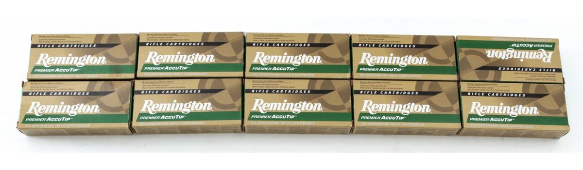 Ammo Lot: 200 Rounds of Remington Premier AccuTip .17 Rem. Fireball, 20 grain AccuTip-V cartridges. Ten (10) 20-round boxes, all brand new in original packaging. Some boxes show light to moderate shelf wear. Retails @ $280/lot. Est.: $150-$250/lot. (Field Time)