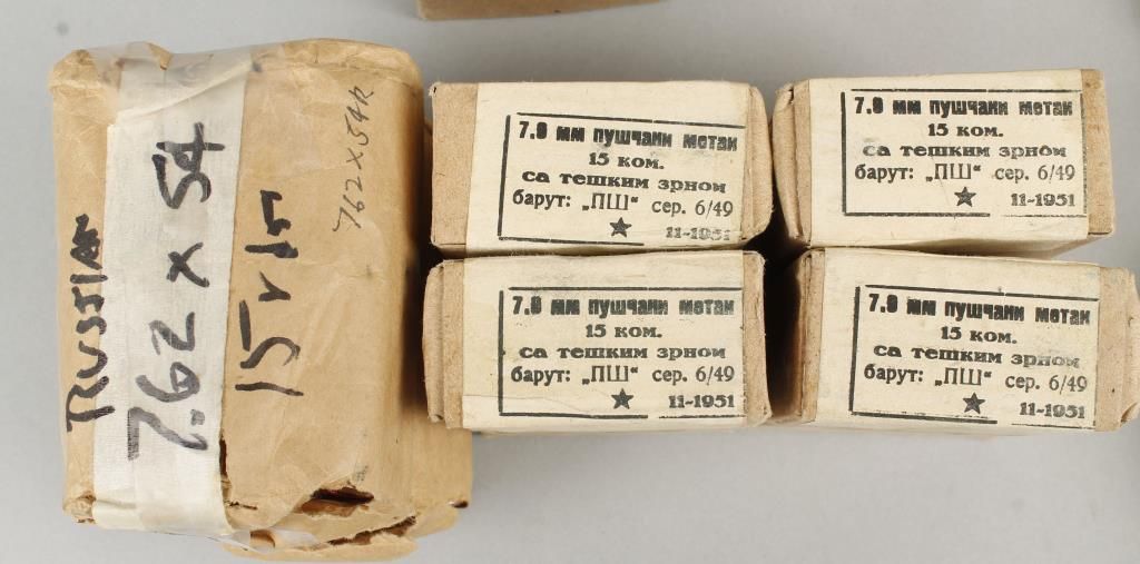 Russian 7.9mm 35 rounds,Russian 7.62X54 15 rounds, 5 boxes 7.9mm, and more.