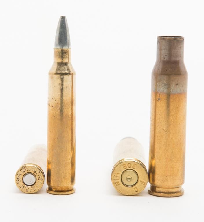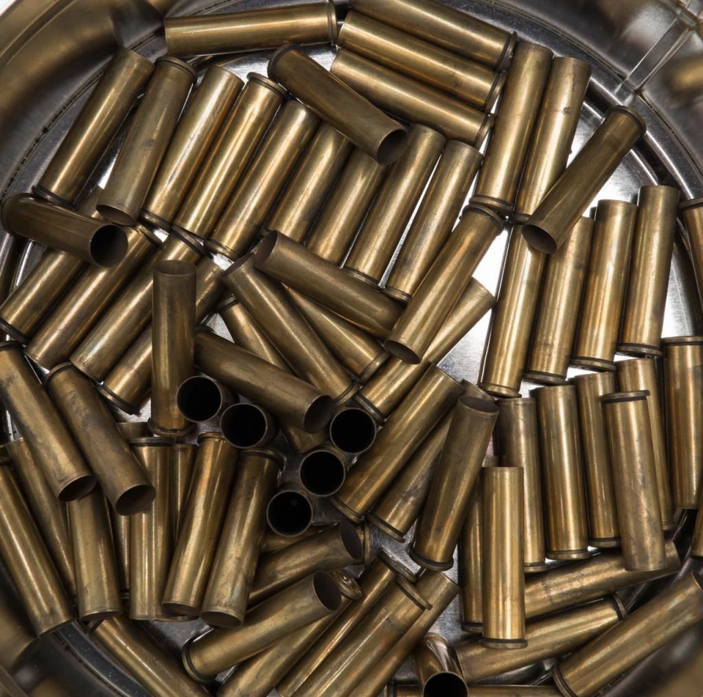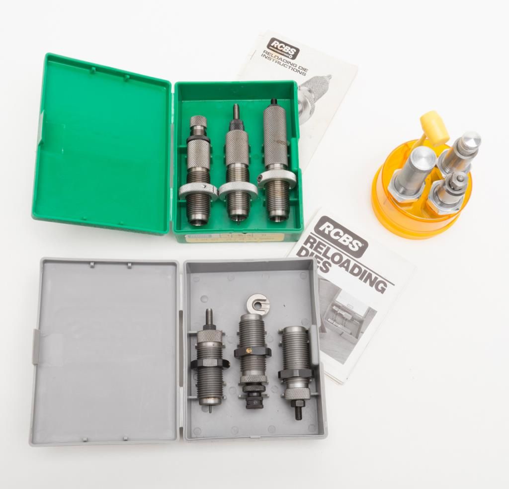 Ammo and reloaders lot including a tin of dozens of .308 brass shells; a tin of misc. bullets, a 3 die RCBS set for .32 auto; 3 die RCBS set for 50/90 2 5 Sharps; Lee Die set for .308 Win., plus add’l misc. brass for .308 Win., misc. rounds of.204 Ruger; misc. .17 HMR rounds and a tin of .357 Remington Max. brass. Est.: $50-$75.