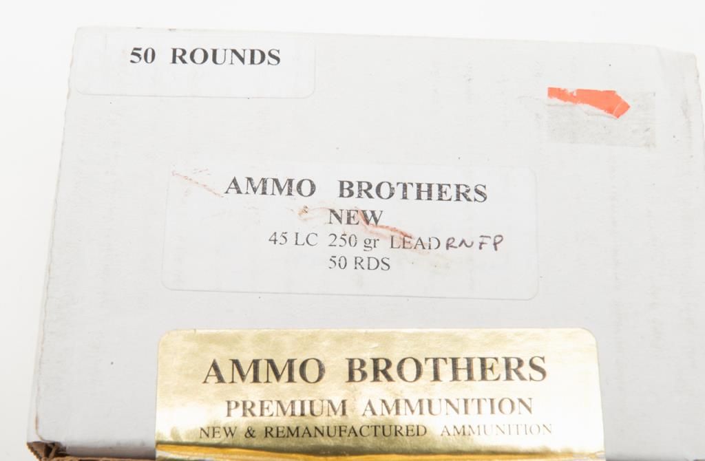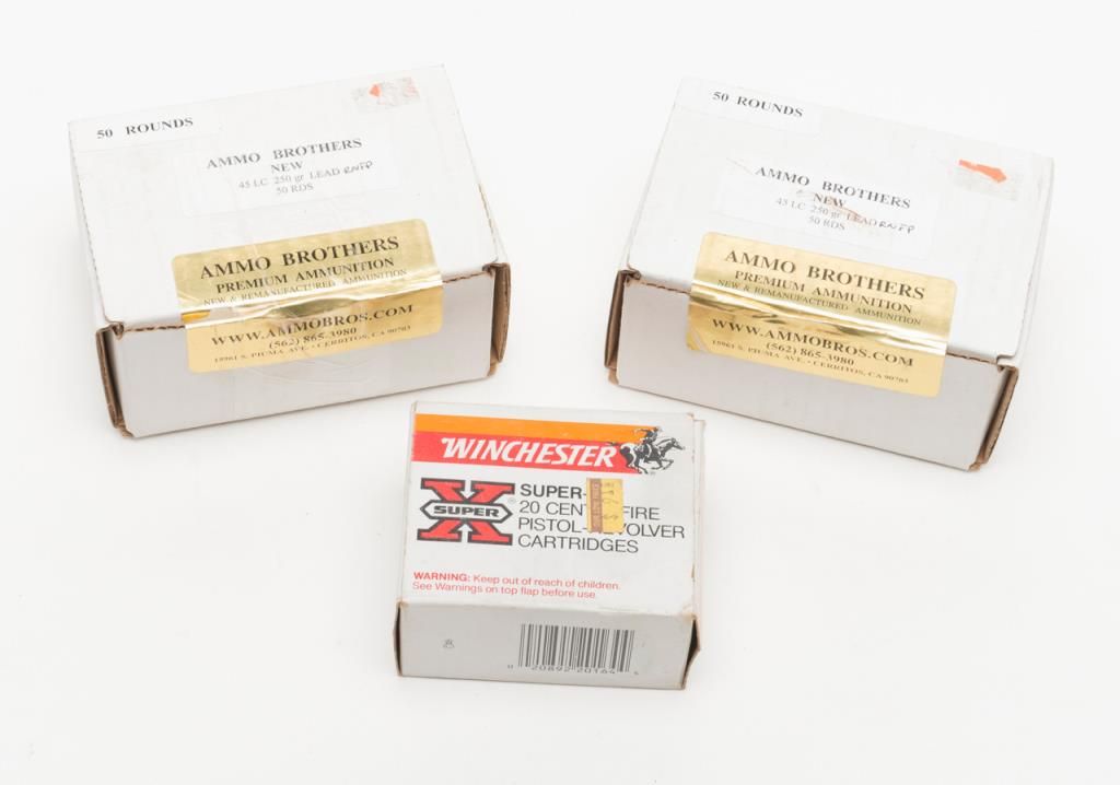 Ammo lot consisting of 100 rounds of .45 long Colt and 20 rounds of .44 Special. Est.: $25-$50.