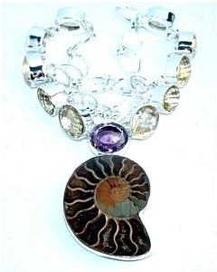 Silver and Ammonite, Amethyst & Citrine Necklace. Allow 6 to 8 weeks for delivery.