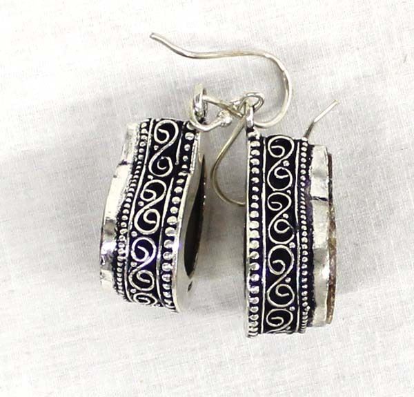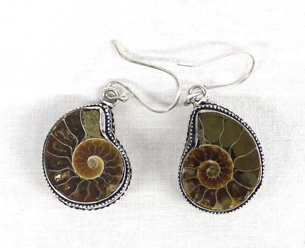 Ammonite Fossils in Sterling Silver Earrings, drops measure 1''L