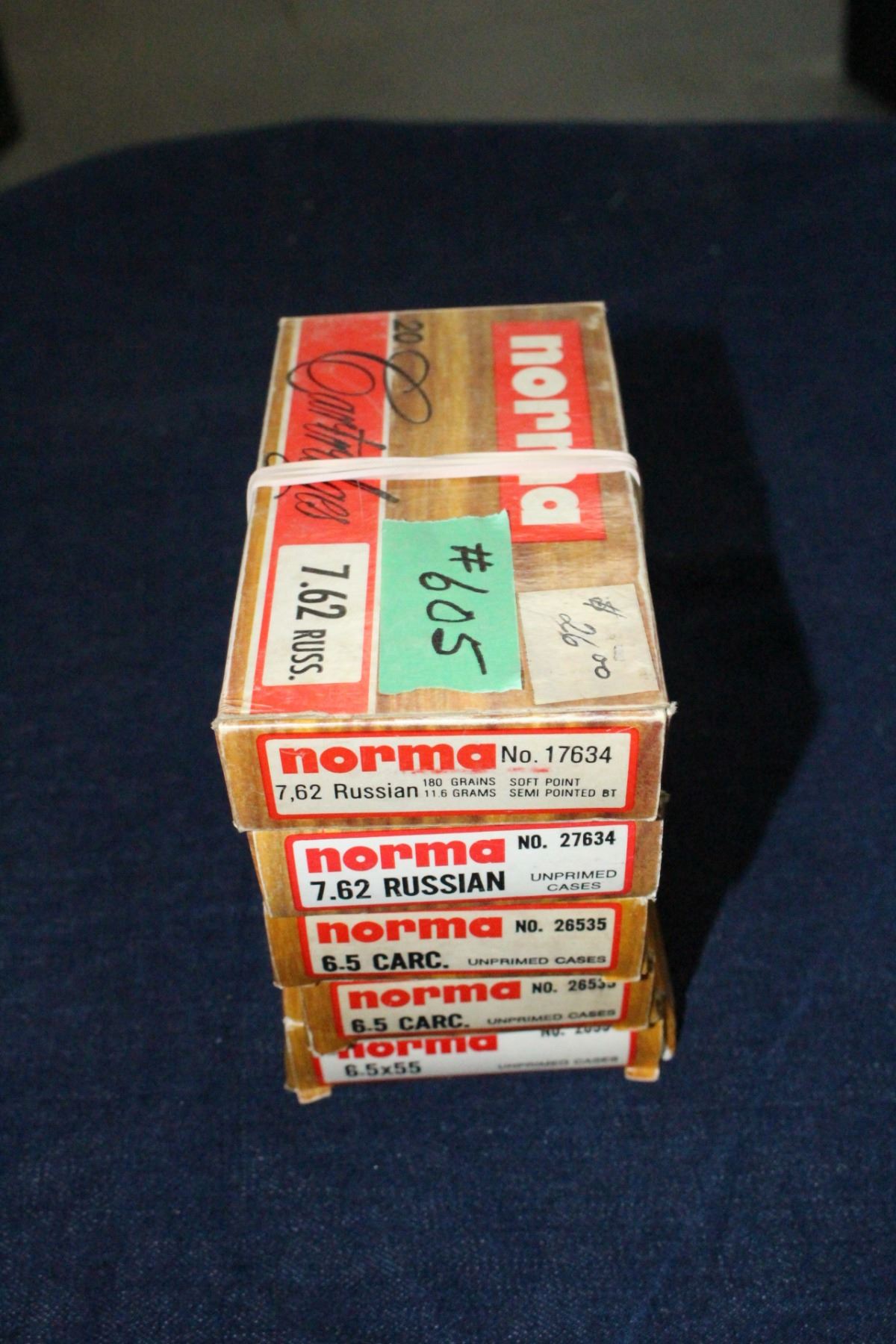 (2) boxes of 7.62 cal.; & (3) boxes of 6.5 cal.