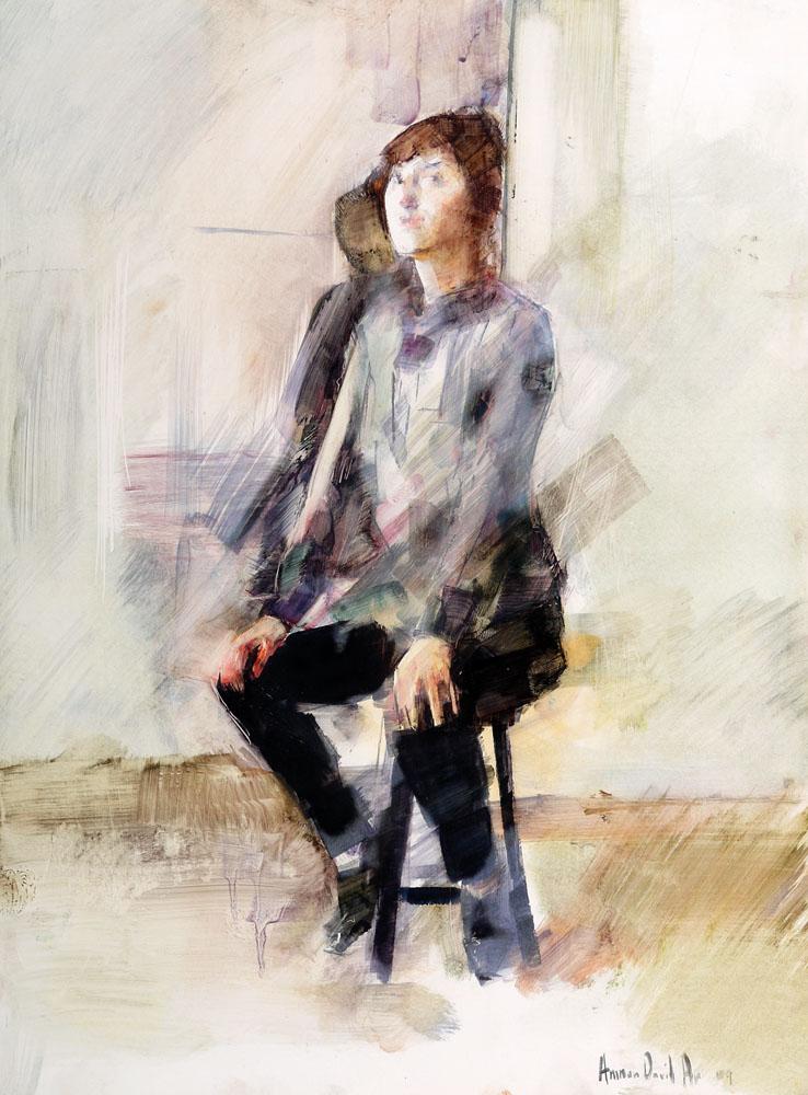 Amnon David Ar, Israeli Art, B. 1973, Woman in the Studio, 2009, Oil on wood, 41x31.5cm, Signed and dated., , , , ,