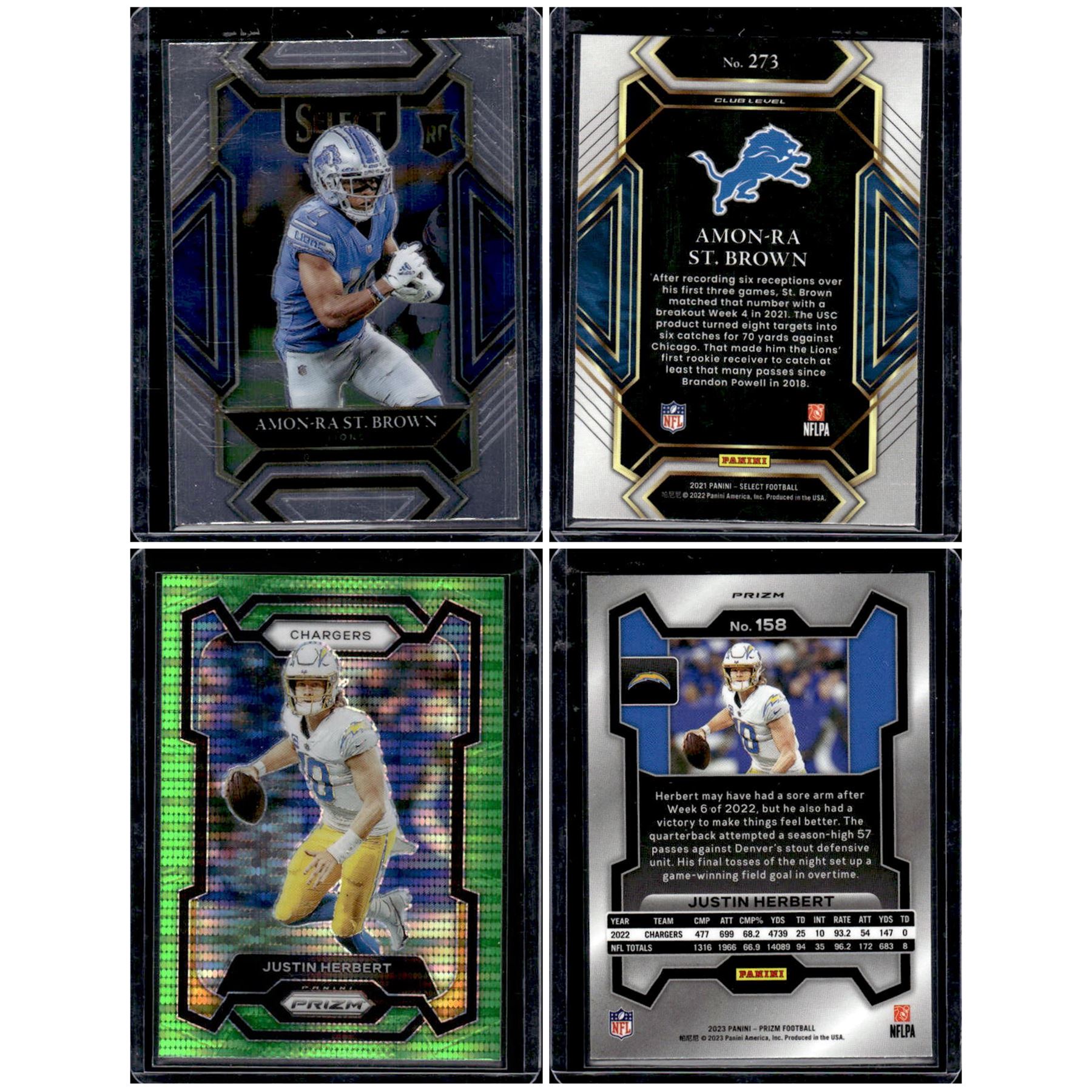 Amon-Ra St. Brown RC Select Club Level & Justin Herbert Prizm Neon Green Pulsar