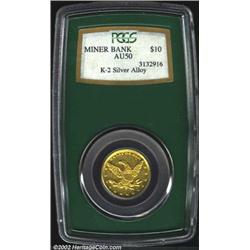 Among the first coiners in California was Miners, Bank, an outgrowth of the many business interests of Stephen A. Wright and Samuel W. Haight in San Francisco. These partners operated a dry goods establishment, exchange house, bank, and ultimately issued paper money and gold coins. By July 1849 Miners Bank were striking coins bearing a Federal eagle on the obverse. These coins exist in both red-gold with a copper alloy believed struck in the East to test the dies, and in a green-tinged gold that is alloyed with silver, typical of native California ores. Only $10 denominations were struck. Assays publicized by muckraker publisher James King, revealed the Miners Bank $10 coins were worth only $9.87 and hysterical discounting followed with the Alta California reporting, "The issue of the Miners Bank is a drug on the market. Brokers refuse to take it at less than 20 per cent discount." As a result all issues are quite scarce.(1849) $10 Miners Bank Ten Dollar AU50 PCGS. Silver Alloy. K-2, R.6. Stephen A. Wright and Samuel W. Hait, respectively president and cashier of Miners Bank, first issued paper money in California dated March 1, 1849. On July 2 of the same year, the two men announced the formation of Wright & Co., Exchange Brokers and opened an office on the corner of Washington and Kearny Streets, Portsmouth Square, San Francisco. The company requested permission from the local customs collector to issue Five and Ten Dollar gold coins, but their proposal was rejected. Nevertheless, Wright and Hait proceeded with their plans for coinage, and as early as October 16, 1849 at least one Miners Bank Ten Dollar found its way to the New Orleans Mint for assay. (The company appears to have dropped the idea of coining Five Dollar pieces.) Although assay reports from the Louisiana branch mint, as well as others from the Philadelphia Mint, showed that the average value of a Miners Bank Ten was a remarkably high $9.87, the firm's respectability as a coinage institution suffered greatly after introduction of a bill in the California Senate in January 1850 that forced all private coiners to redeem their coins in U.S. currency. A subsequent bill reported by the Senate Judiciary Committee on February 6 prevented coinage by individuals and resulted in a panic in California. Merchants and businessmen started to shun private gold coins, particularly those of the Miners Bank, which had been overvalued since their introduction into economic channels. In April 1850, the Alta California published a statement that confirmed the end of widespread acceptability for the Miners Bank gold coins: "The issue of the Miners Bank is a drug on the market. Brokers refuse to touch it at less than 20 per cent discount." The present example was struck in gold alloyed with silver. This is the so-called "Crimped Edge" variety that was struck from a different, smaller collar that caused the rims to be somewhat beveled. Both sides display bright green-gold color with some copper-russet overtones and appreciable reflectivity. Well struck with scattered small and moderate abrasions seen on both sides; however, the only worthwhile pedigree markers are a few small obverse spots in the field below the eagle's left (facing) wing. Housed in a PCGS Regency presentation holder. Listed on page 293 of the 2002 Guide Book. Notes on the slab of this coin, presumably written by the late Jack Klausen, state: "Possibly finest known. Only four known--way underpriced in Red Book." When Private Gold Coins and Patterns of the United States was first published in 1981, it was thought that this variety was much rarer than it is now known to be. It had an R-8 rarity factor at that time, but today we believe this variety to be just slightly scarcer--a High Rarity-6. Nevertheless, it is not often that such pieces are available.From The Estate of Jack L. Klausen. Important notice: We expect to be auctioning lots at the rate of 200-250 per hour. Sometimes eBay Premier live bid software cannot keep up with that pace, so we strongly recommend that you place a realistic proxy bid now as insurance to avoid disappointment. Also please note that all Heritage/CAA lots purchased through eBay Premier carry a 20% Buyer's Premium. Please make sure you read the Terms and Conditions.