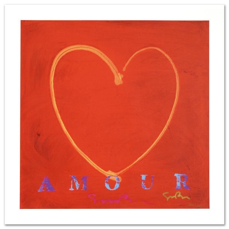 "Amor" is a limited edition giclee on canvas, numbered and hand signed by Simon Bull. Measures approx. 18" x 18" (image).