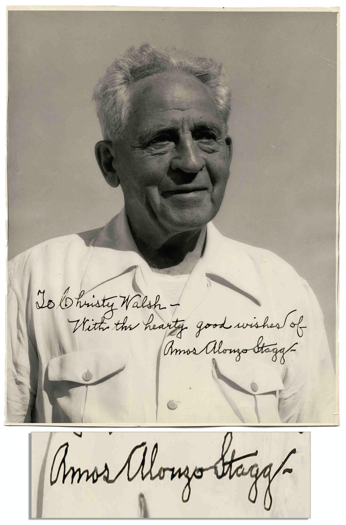 Amos Alonzo Stagg 8'' x 11'' Signed Photo, ''To Christy Walsh / With the hearty good wishes of / Amos Alonzo Stagg'' -- Near Fine