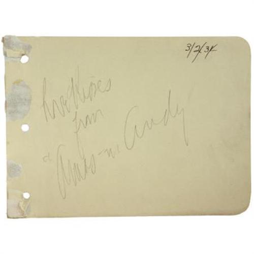 <B>“Amos & Andy” Signature</B></I>, 6.5” x 4.5”, in pencil on an autograph book page, “3/2/34”. Near fine.<BR><BR><BR><b>Shipping:</b> Flat Material, Small (<a target="_blank" href="http://www.heritageauctions.com/common/shipping.php">view shipping information</a>)