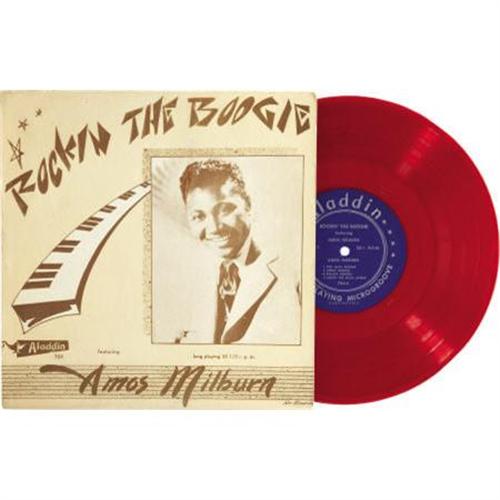 <B>Amos Milburn</B></I> <B><I>Rockin' The Boogie</B></I></B></I> <B>10" LP (Aladdin 592, 1955).</B></I> Just like the previous lot, only rarer -- the red vinyl version of one of first LPs released by the Los Angeles-based Aladdin label. The Blues/boogie-woogie styled singer-pianist was an original, and paved the way for other R&B performers to later cross over onto the Pop charts, Fats Domino being a prime example. In the late 1940s and early 1950s, Milburn had four #1 R&B hits, plus 15 other Top 10 smashes. Condition VG-EX 6 (with brown felt touchup on front cover)/ VG 5.<BR><BR><b>Shipping:</b> Recordings (<a target="_blank" href="http://www.heritageauctions.com/common/shipping.php">view shipping information</a>)