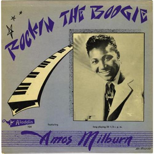 <B>Amos Milburn</B></I> <B><I>Rockin' the Boogie</B></I></B></I> <B>Mono 10" LP (Aladdin 704, 1955).</B></I> Awesome copy of one of the '50s most sought-after records in a rare 10" LP format. This is a black vinyl version with the blue cover. The back cover has a sticker affixed by the record company, apparently for promotional radio reference. What a copy! Condition: EX 7 (cover)/ NM 8 (record).<BR><BR><b>Shipping:</b> Recordings (<a target="_blank" href="http://www.heritageauctions.com/common/shipping.php">view shipping information</a>)