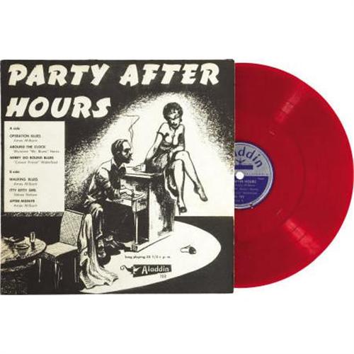 <B>Amos Milburn and Others</B></I> <B><I>Party After Hours</B></I></B></I> <B>LP (Aladdin 703, 1955).</B></I> What a trifecta! Here's a third rarity in our auction that features the influential Mr. Milburn, plus another great Blues shouter, Wynonie "Mr. Blues" Harris. Additional cuts are from "Crown Prince" Waterford and Velma Nelson. All in all, six selections on this 10" LP, renowned for its off-color lyrics and irresistible party vibe. Like Milburn's "Rockin' the Boogie," this compilation was issued in both black and red vinyl. And like that recording, the black vinyl version is pretty scarce -- the red vinyl version <I>really</B></I> scarce! Put the album cover graphics, the red vinyl, the musical content, and the rarity factor together, and you have one dynamite collector's record! Condition: EX 7/ VG 5.<BR><BR><b>Shipping:</b> Recordings (<a target="_blank" href="http://www.heritageauctions.com/common/shipping.php">view shipping information</a>)