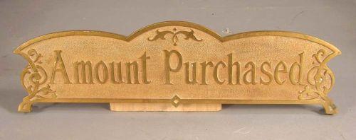Amount Purchased Cash Register Top Sign. Original Brass. 14 1/2 inches between holes.