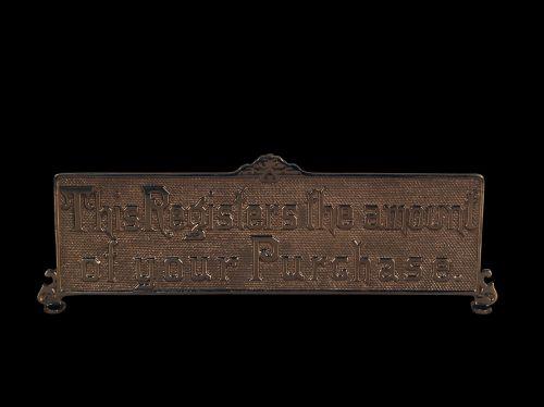 Amount Purchased Sign from a brass N.C.R. "This Registers The Amount of Your Purchase" (Jimmy Filler Collection)