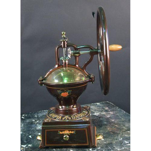 Ampia Garanzia 1 wheel restored grinder - brown & brass 23" tall