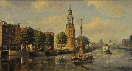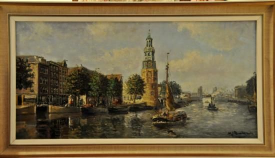 Normal 0 Oil on canvas with view of Amsterdam canal, original frame. Overall 36"x 20". Good condition, cleaned and varnished.