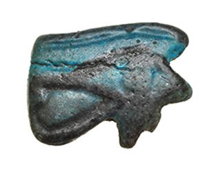 Amuleto de Baja Época (664-525 a.C.). Ojo de Horus. Fayenza vitrificada color turquesa. Longitud 1,7 cm.