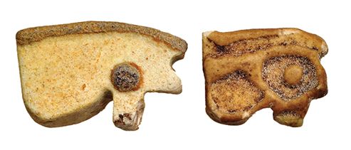 Amuletos de Baja Época (664-525 a.C.). Lote dos ojos de Horus. Fayenza. Longitud 1,0 a 1,4 cm.