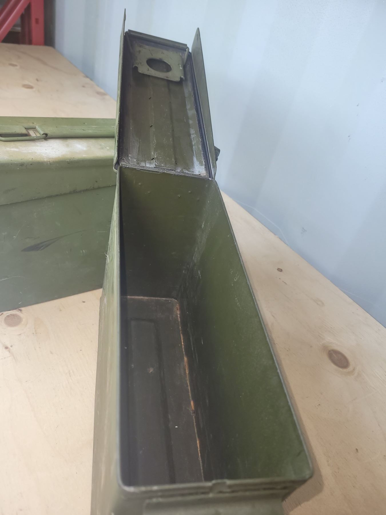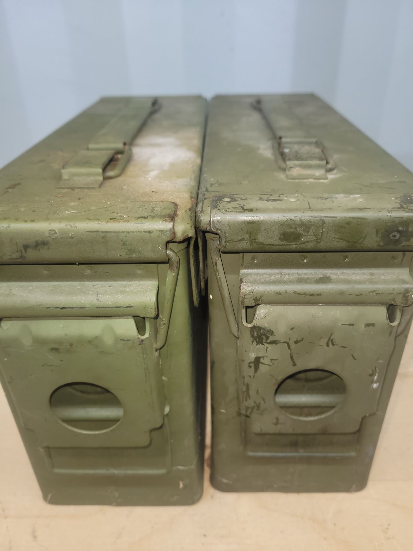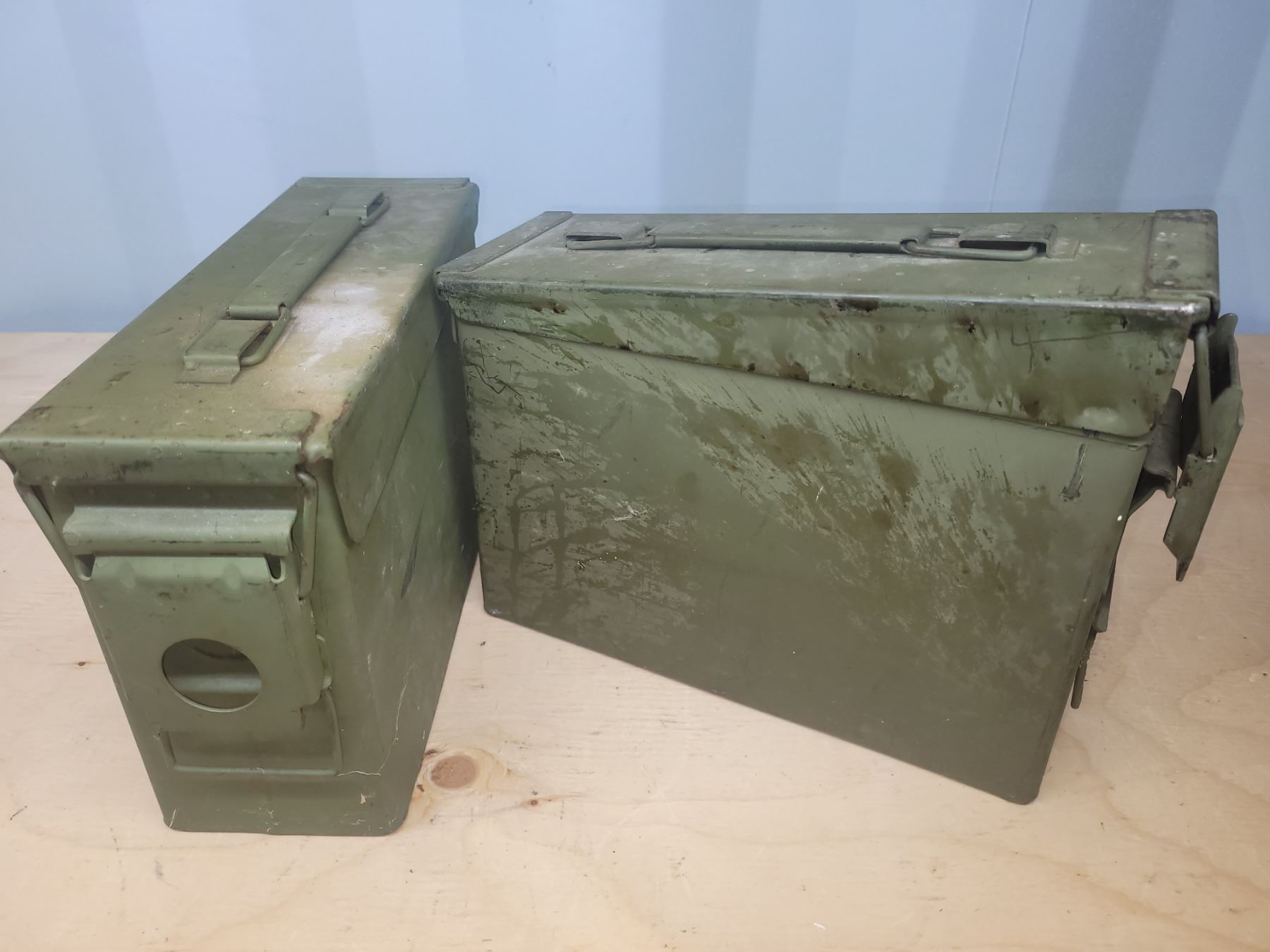 2 metal amunition storage boxes 3x10x7 Pickup at 9 am