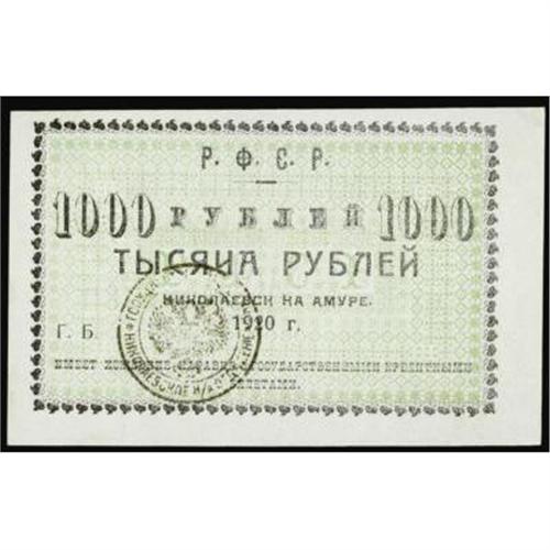 <style type="text/css"> body, td, th { font-family: Arial, Helvetica, sans-serif; font-size: 12px; color: #482424; margin: 0px; padding: 0px; } #header { background-image: url(http://www.bowersandmerena.com/ebay/images/template_v3_01.gif); clear: both; background-color: #590303; border-top-width: 2px; border-top-style: solid; border-top-color: #B38C4F; } #header #header_wrapper { height: 75px; clear: both; width: 800px; margin-right: auto; margin-left: auto; background-image: url(http://www.bowersandmerena.com/ebay/images/template_v3_03.gif); background-repeat: no-repeat; background-position: right; color: #F3EDCC; } #header #header_wrapper #header_logo { float: left; height: 75px; width: 444px; background-image: url(http://www.bowersandmerena.com/ebay/images/template_v3_02.gif); background-repeat: no-repeat; font-size: 10px; text-transform: capitalize; color: #B38C4F; } #header #header_wrapper #header_right { float: left; height: 75px; width: 356px; text-align: right; } #header #header_wrapper #header_right #headerLoginBtn { margin-bottom: 30px; } #header #header_wrapper #header_right input#txtSearch { color: #B49056; border: 1px solid #B49056; width: 175px; padding-top: 3px; padding-right: 3px; padding-bottom: 4px; padding-left: 3px; } #nav { height: 37px; background-image: url(http://www.bowersandmerena.com/ebay/images/template_v3_05.gif); clear: both; } #nav #nav_wrapper { height: 35px; width: 800px; margin-right: auto; margin-left: auto; border-left-width: 1px; border-left-style: solid; border-left-color: #B38C4F; } #nav #nav_wrapper a { padding-right: 15px; padding-left: 15px; border-right-width: 1px; border-right-style: solid; border-right-color: #B38C4F; height: 25px; padding-top: 10px; display: block; float: left; text-decoration: none; font-weight: bold; color: #5D0303; } #nav #nav_wrapper a:hover { color: #B38C4F; } #nav #nav_wrapper #search { float: right; padding-top: 7px; } #nav #nav_wrapper #search #txtSearch { font-family: Arial, Helvetica, sans-serif; font-size: 10px; text-transform: uppercase; color: #D2AE75; border: 1px solid #B38C4F; padding: 3px; } #content_bgd { background-image: url(http://www.bowersandmerena.com/ebay/images/template_v3_09.gif); background-repeat: repeat-y; background-position: center; padding-top: 15px; padding-bottom: 15px; background-color: #FBFBDB; } #content_wrapper { clear: both; height: auto; width: 800px; margin-right: auto; margin-left: auto; } .LotDetailWhite { line-height:normal; font-size:13px; font-family: arial,helvetica,sans-serif; color: White; font-weight: bold; } .LotDetailInformation { line-height:normal; font-size: 13px; font-family: arial,helvetica,sans-serif; } .LotDetailMessage { line-height:normal; font-size: 13px; font-family: arial,helvetica,sans-serif; color: red; } } tr.HeaderAuctionTitle td { color: #000000; font-weight: bold; padding: 2px; background-image: url(http://www.bowersandmerena.com/ebay/images/template_v3_05.gif); background-repeat: repeat-x; border-bottom-width: 1px; border-bottom-style: solid; border-bottom-color: #B38C4F; } table.AuctionSummary a, table.AuctionSummary a:link, table.AuctionSummary a:visited { color: #0000FF; text-decoration: none; } } td.tableHeaderLeft { border-left-width: 1px; border-left-style: solid; border-left-color: #B38C4F; } td.tableHeaderRight { border-right-width: 1px; border-right-style: solid; border-right-color: #B38C4F; } td.tableCellMiddle { border-left-width: 1px; border-left-style: solid; border-left-color: #B38C4F; border-right-width: 1px; border-right-style: solid; border-right-color: #B38C4F; padding: 5px; } tr.footer td { border-top-width: 1px; border-top-style: solid; border-top-color: #B38C4F; } </style> </head> <body> <div id="header"> <div id="header_wrapper"> <div id="header_logo"> </div> <div id="header_right"> </div> </div> </div> <div id="nav"> <div id="nav_wrapper"> <a href="http://www.bowersandmerena.com">Our eBayLive Auctions</a> <a href="#PaymentInfo">Payment Information</a> <a href="#ShippingInfo">Shipping Information</a> <a href="#About">About Bowers and Merena</a> </div> </div> <div id="content_bgd"> <div id="content_wrapper"> <table width="100%" border="0" cellpadding="5" cellspacing="0" class="AuctionSummary"> <tbody> <tr class="HeaderAuctionTitle" style="height: 25px;"> <td align="left" class="tableHeaderLeft" > </td> <td align="center" class="tableHeaderRight"> <span style="font-size: large;">Lot #2315. East Siberia. City of Mikolaevsk, Amur, Bank of Mikolaevsk, Exchange or Scrip Note Issue.</span> </td> </tr> <tr> <td colspan="3" class="tableCellMiddle"> Lot of 5 notes. All 1920. 250 Rubles and 4 different color and paper varieties of 1000 Rubles notes. All in CU. All with circular black handstamp on face, P-Unlisted, Denis #857, Scarce and attractive.