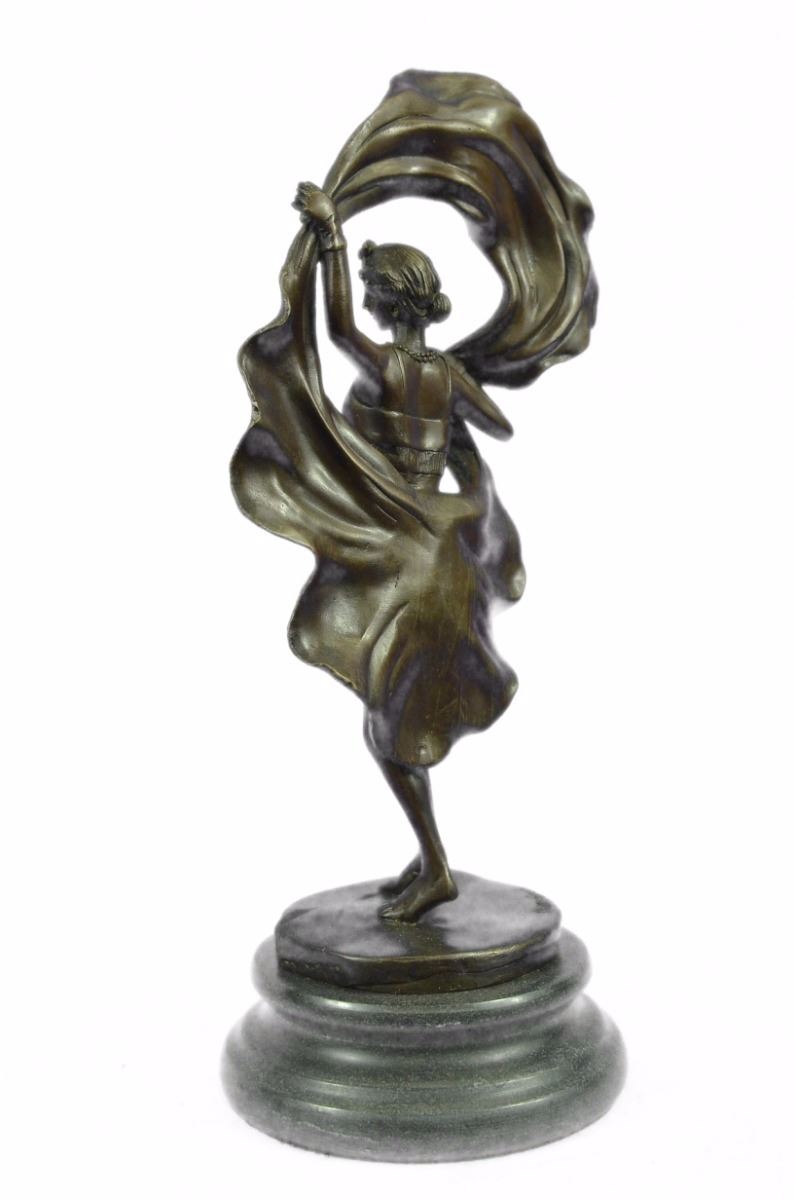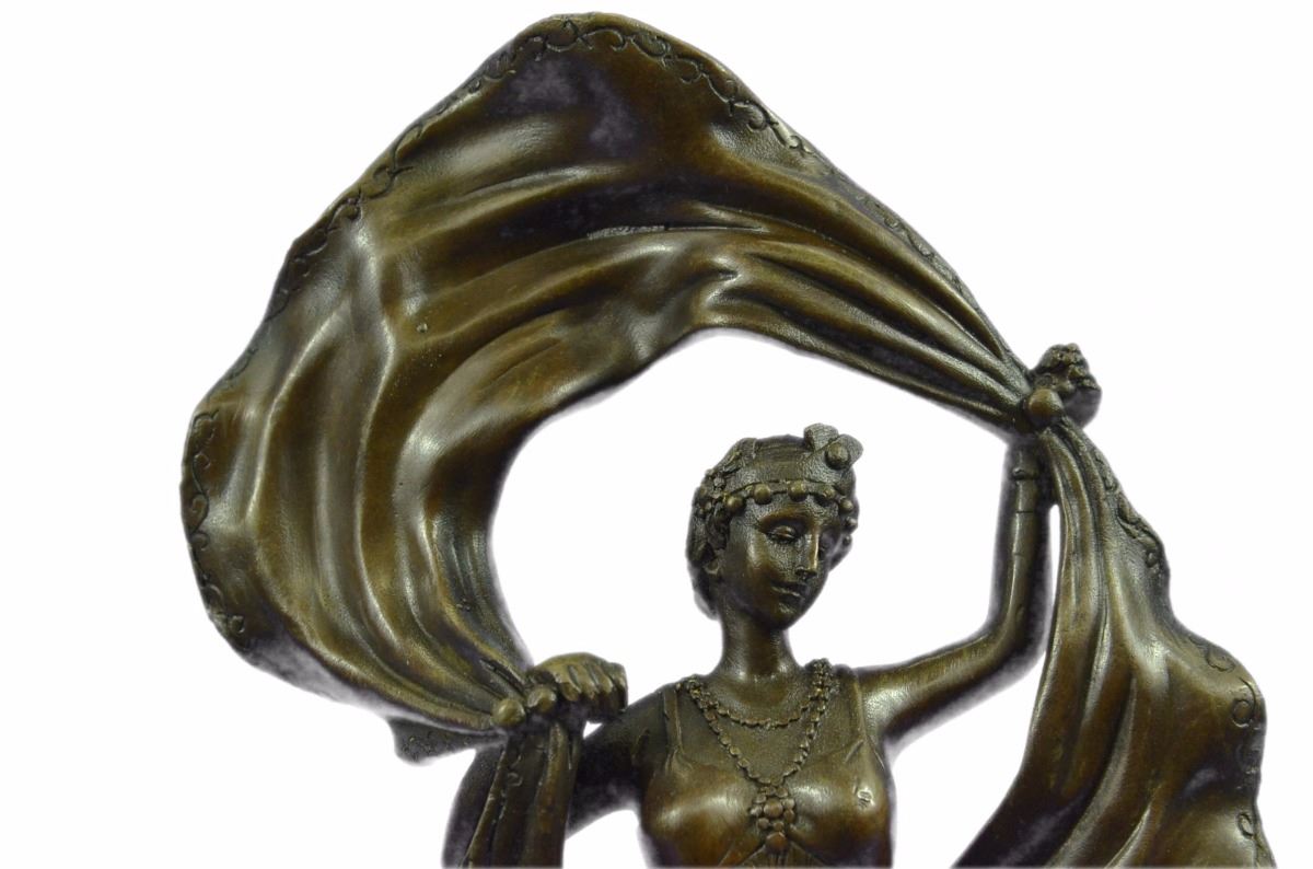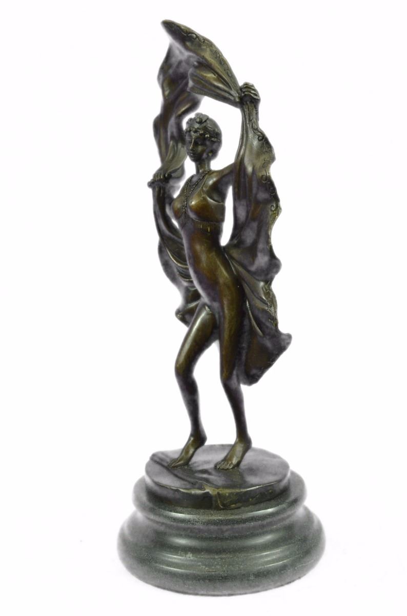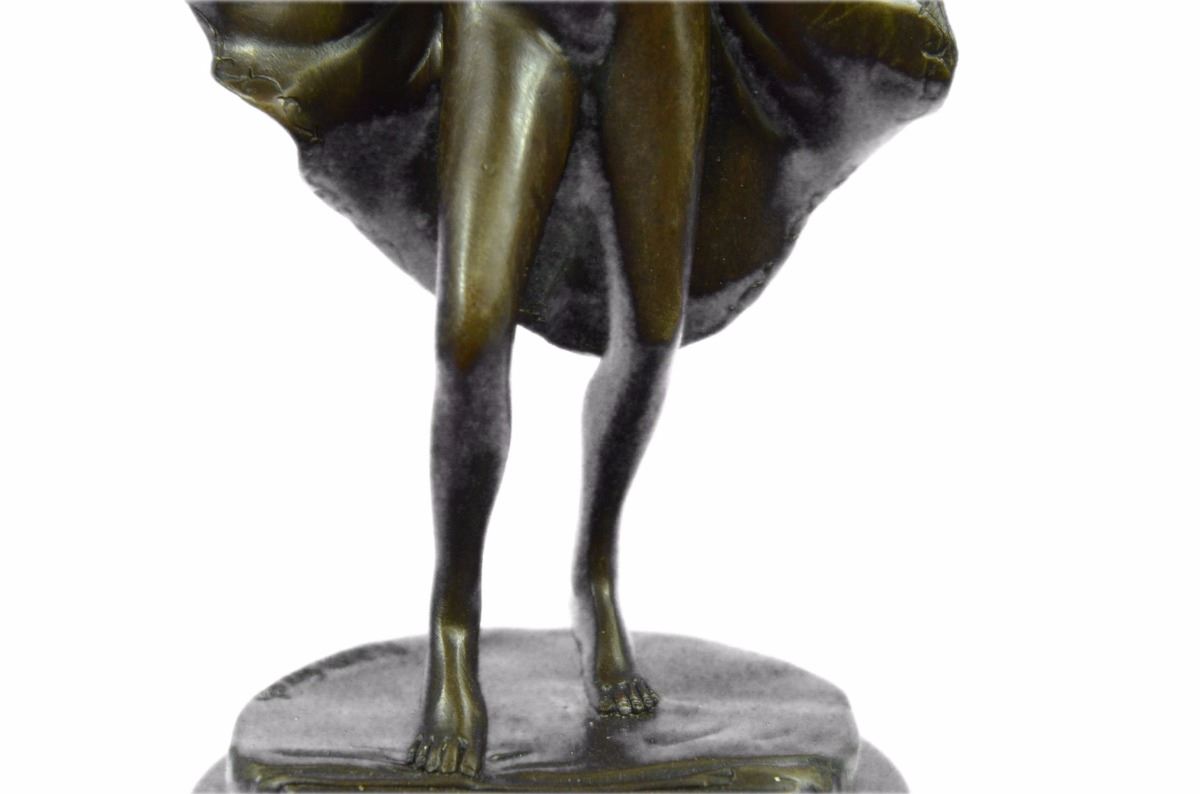An Amusing Erotic Bronze Figure Of A Young Dancer With Fine Hot Painted Color And Good Detail, The Skirt Hinged To Reveal Her Naked Body, Signed 'Nam Greb' To The Base And Raised On A Round Black Marble Plinth. Bronze Dimensions With Marble Base: Height 12 X Width 6 inches. Weight: 7 Lbs. This Is Not An Original Of His Work But A Recent Reproduction.