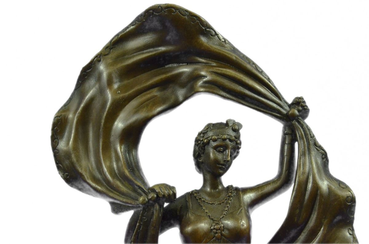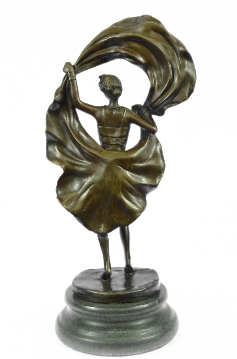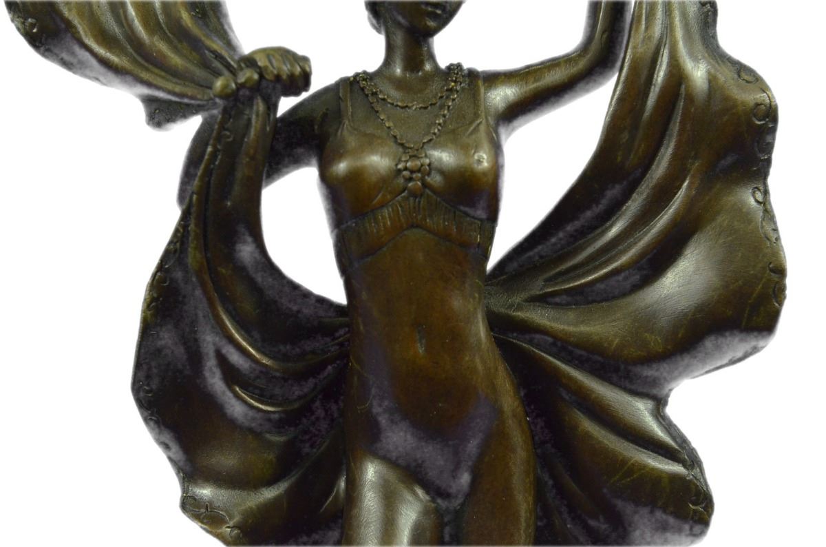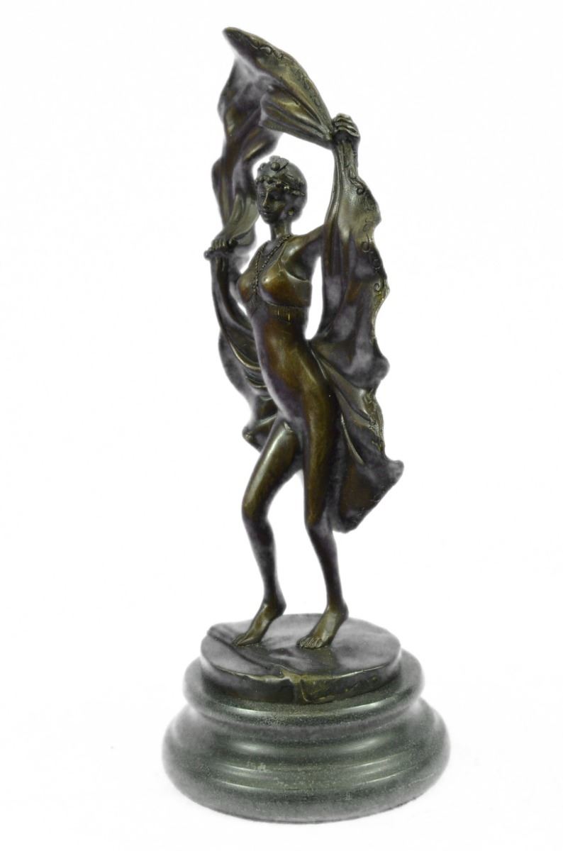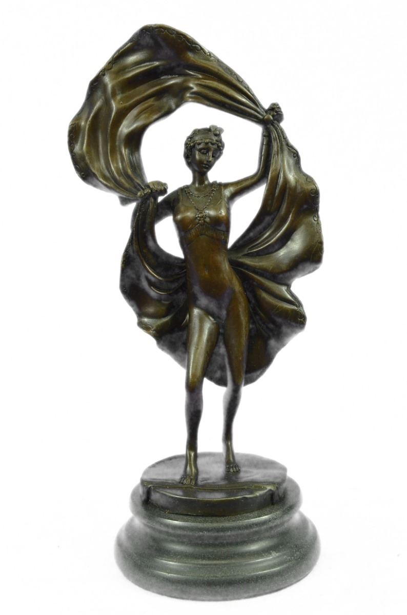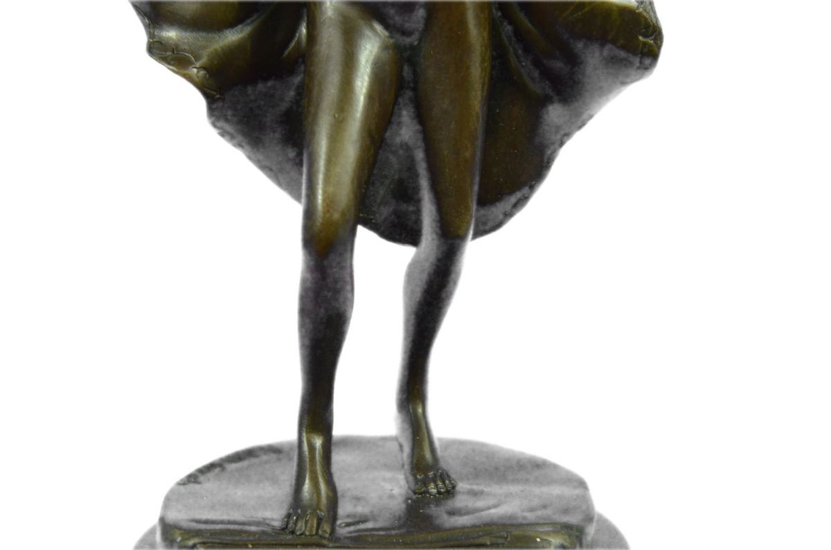 An Amusing Erotic Bronze Figure Of A Young Dancer With Fine Hot Painted Color And Good Detail, The Skirt Hinged To Reveal Her Naked Body, Signed 'Nam Greb' To The Base And Raised On A Round Black Marble Plinth. Bronze Dimensions With Marble Base: Height 12 X Width 6 inches. Weight: 7 Lbs. This Is Not An Original Of His Work But A Recent Reproduction. FT026FT026