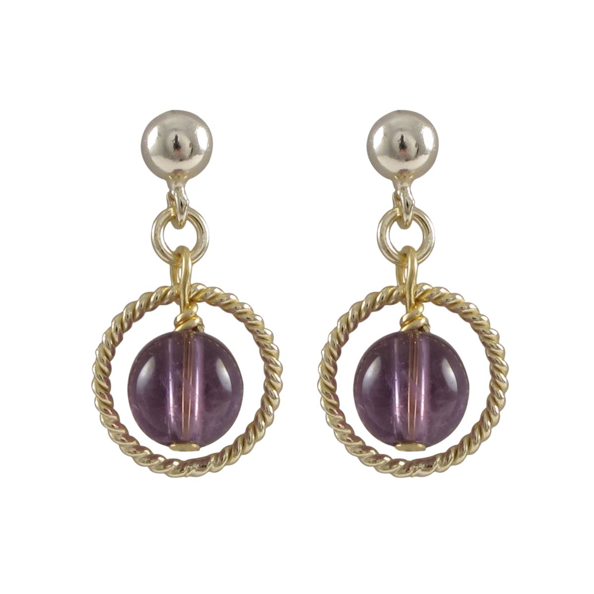 Amy 6Mm Semi Precious Ball In 10Mm Braided Ring, On Gold Plated Sterling Silver Ball Post Earrings, 0.75"