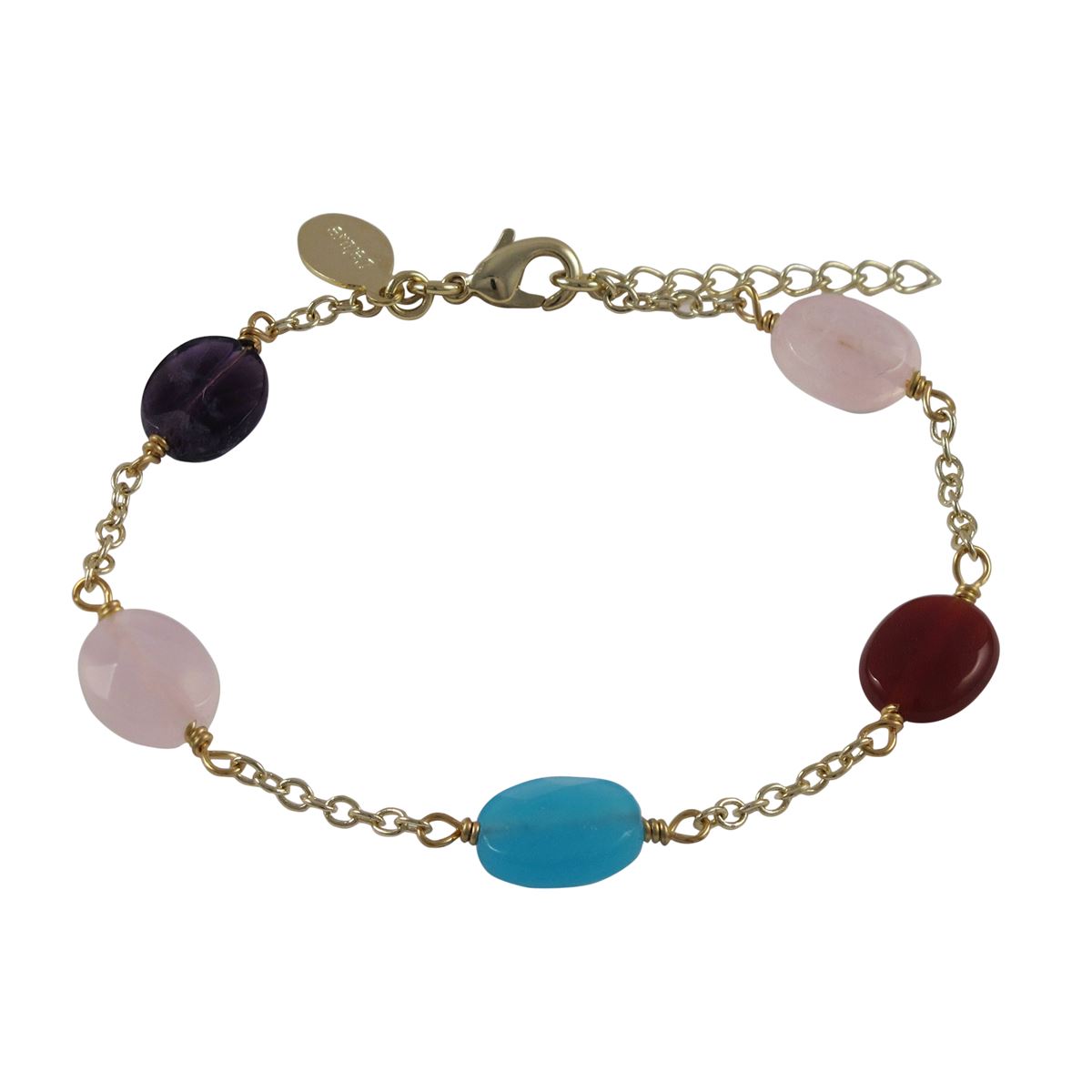 Amy And Rose Quartz Combination Semi Precious Stones On Gold Plated Brass Chain Bracelet, 6.5" 1"