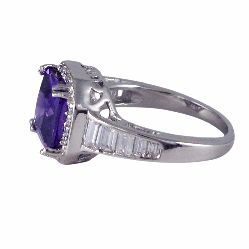 Amy CZ Square Center Stone Surrounded With White Czs, Sterling Silver Ring Size 8