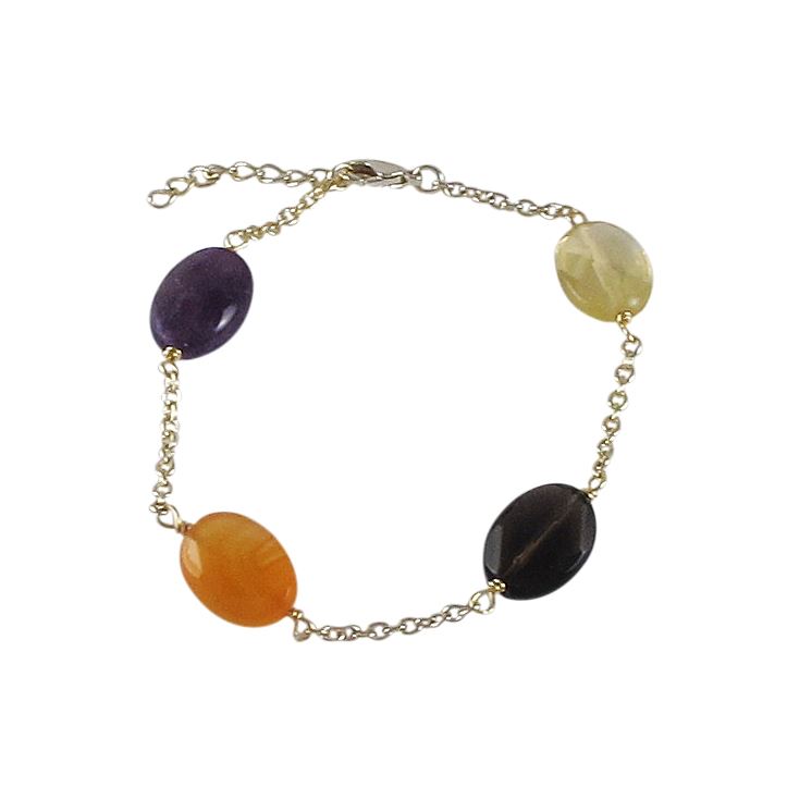 Amy Citrine Combination Semi Precious Stones On Gold Tone Brass Bracelet -7" 1"