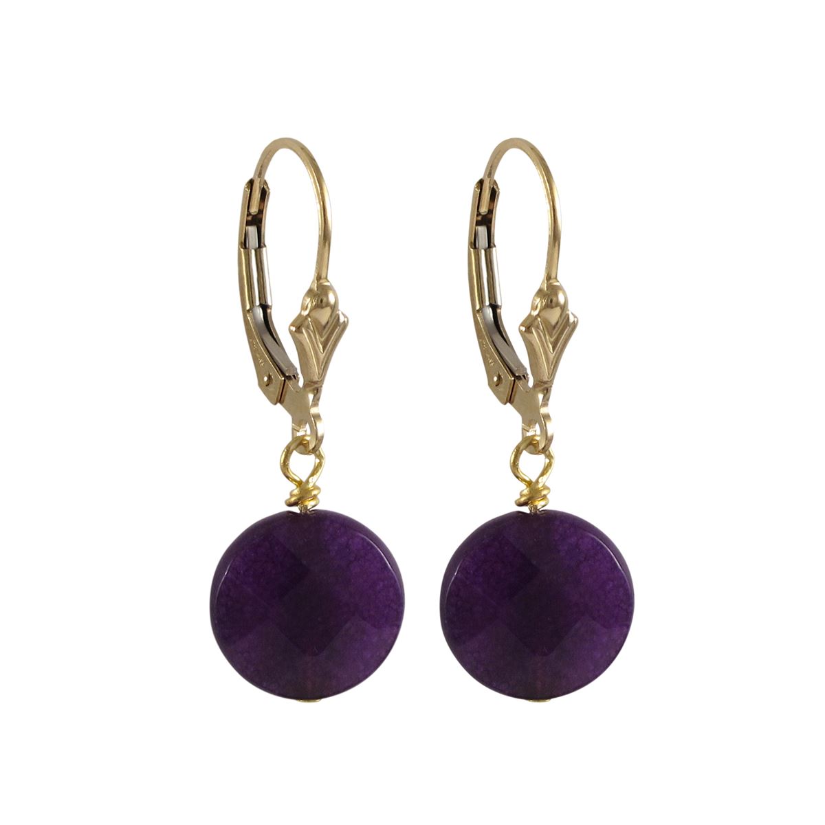 Amy Semi Precious 10Mm Round Flat Stone On Gold Filled Lever Back Earrings, 1.18"
