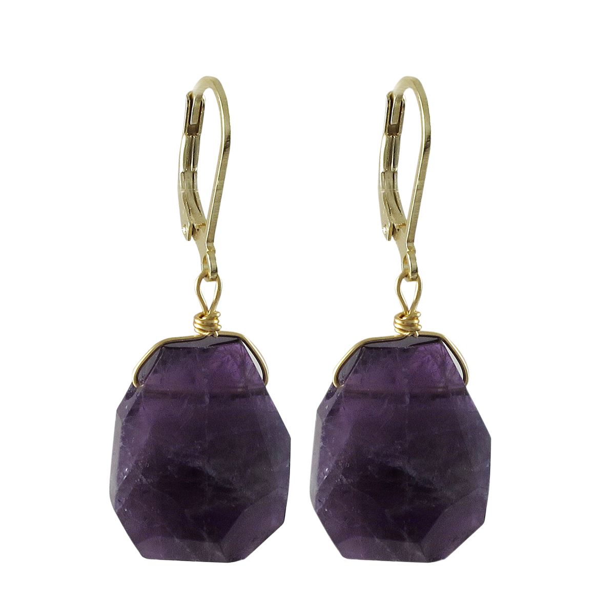 Amy Semi Precious Stone On Gold Tone Sterling Silver Lever Back Earrings -1.54"