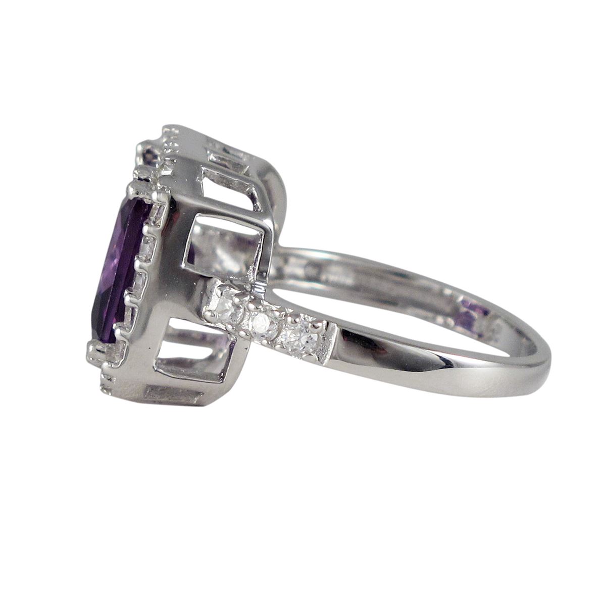 Amythest Square CZ, Surrounded With White Czs, Sterling Silver Ring Size 6