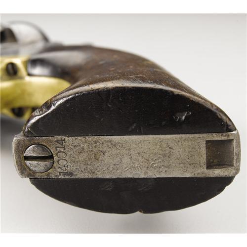 <B>An 1860 Colt Army Revolver Presented to General George Armstrong Custer</B></I> The major revolver used by US troops during the Civil War, this .44 caliber revolver bears an inscription presenting it to General George Armstrong Custer from a 'B. Hankin'. Bearing the serial number 140014 and featuring an 8" round barrel, 6 shot cylinder, back strap, loading lever and plunger and butt strap, all iron, this 1860 Colt has been published extensively indicating its presentation to Custer. The trigger guard, front strap and blade front sight are brass. The serial number 140014 appears on the barrel lug, on the frame in front of the trigger guard, trigger guard flat, and butt strap. "6535" is stamped on the bottom of the wedge. The grip is walnut.<BR> The top of the barrel is stamped "Address Col. Sam L Colt, New York, U.S. America" with the cylinder circumference stamped "Colt Patent No. 0014" over "Pat. Sept. 10,1850". "Colt's Patent" is stamped on the left side of the frame in two lines.<BR> The back strap is engraved "Gen. Geo. A. Custer from B. Hankin", faintly, but legible. Descending from a family collection, this weapon has been known to exist in Kansas for many decades, but, as yet, the identity of Mr. Hankin is unknown. Custer spent much time in Kansas and it is possible that this Colt was given to him by an English sportsman who had hunted buffalo with him and was an admirer of his Civil War deeds.<BR><BR>This 1860 Colt is in good mechanical condition with a dark, rich patina on all iron parts except the last 3" of the barrel near the muzzle end which is darker. There are some minor dings and light pitting throughout. The grip has a few dings along the edge of the butt and minor scratches on the right side. The brass parts have a mellow patina which match the overall wear of the gun.<BR>There is extensive provenance with this 1860 Colt. A two-page " Statement", undated, by John S. duMont states that he purchased this revolver in 1952. Mr. duMont believed that 'B. Hankin' was probably an English sportsman who hunted with Custer and purchased a pair of Colt Army Model revolvers, had them engraved, and then presented them to Custer. The pair were split up at some unknown point. The accompanying file contains evidence of another Army Model with the same presentation on the back strap. A 1952 letter from Chas W. Fritz to John duMont states that he (Fritz) had owned the pair and "had an affidavit from a son of B. Hankin certifying that his father had given Custer these guns". He goes on to say that "these guns became separated and I sold the remaining one and the affidavit some years ago"<BR> Published: <I> Samuel Colt Presents,</B></I> pg. 190<BR><I> Life Magazine,</B></I> March 2, 1962<BR><I>Frontier Guns</B></I> pg 34 <BR><I>Amon Carter Museum of Western Art, Ft Worth, TX, 1964</B></I><BR><I>Gun Report,</B></I> December 1963<BR><I>Firearms in the Custer Battle</B></I> by Parsons and duMont (pictured but serial number not mentioned)<BR><BR><b>Shipping:</b> Requires 3rd Party Shipping (<a target="_blank" href="http://www.heritageauctions.com/common/shipping.php">view shipping information</a>)